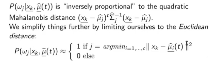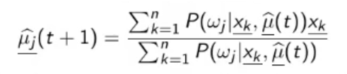 - Re-calculate for applying the previous equation for updating (arithmetic mean of the pattern in cluster ).