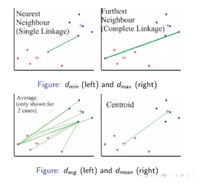 The most popular measures of distance between 2 clusters are: