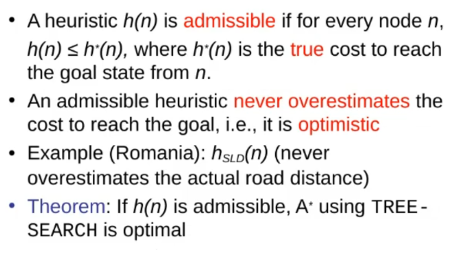 Admissible Heuristic (Definition & Theorem):