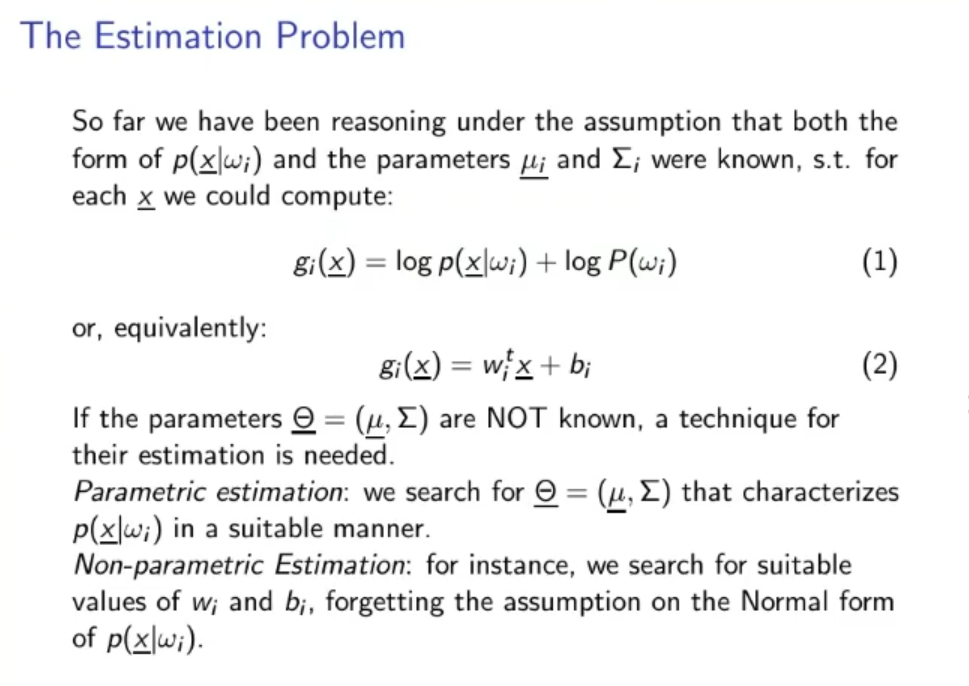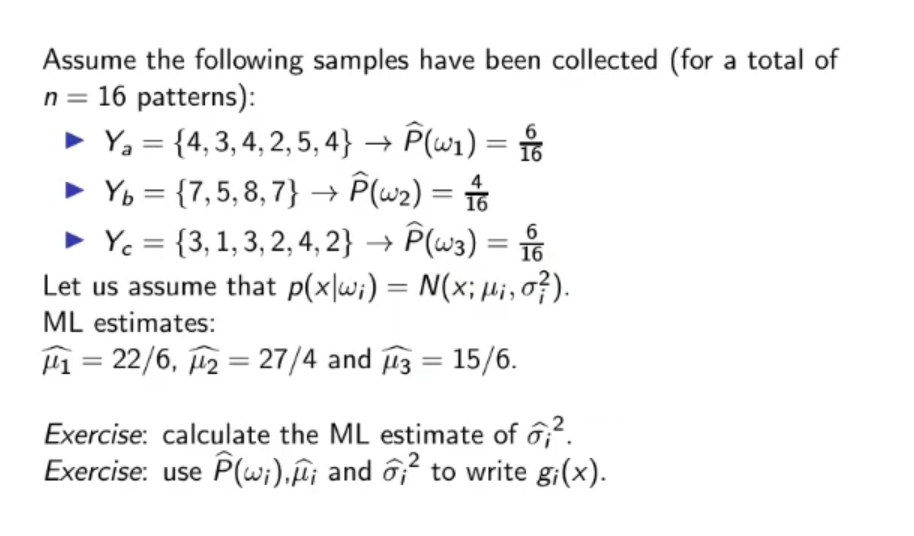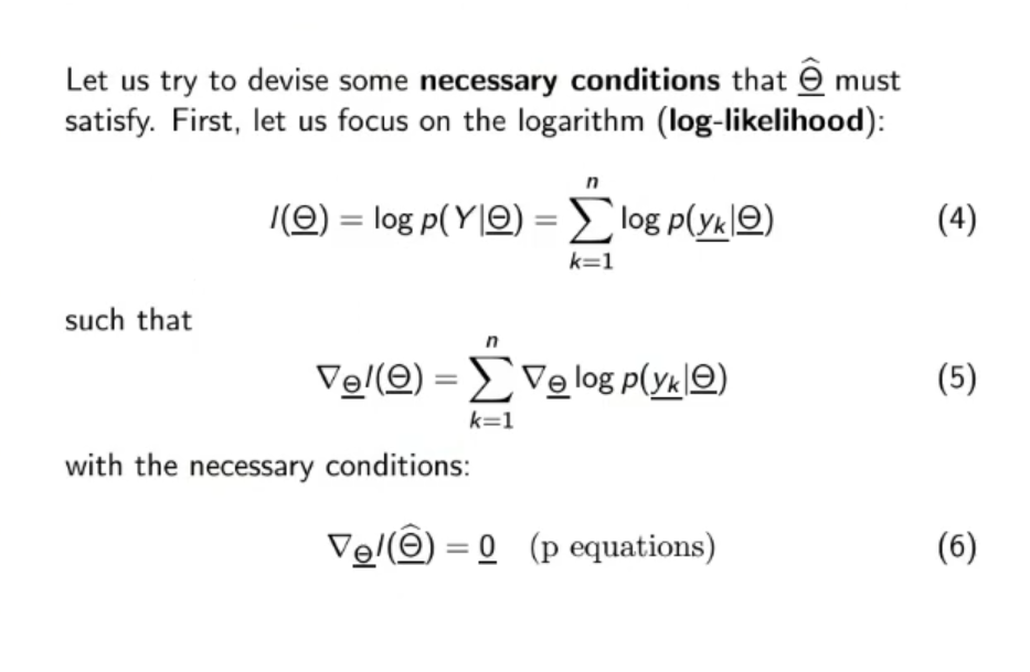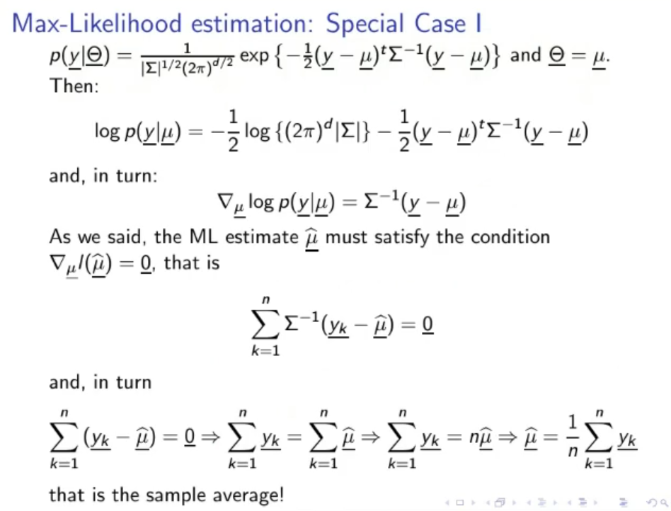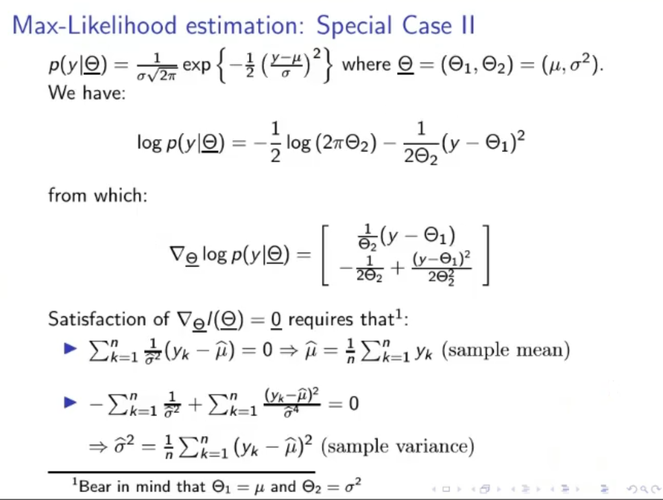~Example : If we know that is a Gaussian Distribution the maximum likelihood of the mean and variance are respectively the sample-mean and biased sample variance.