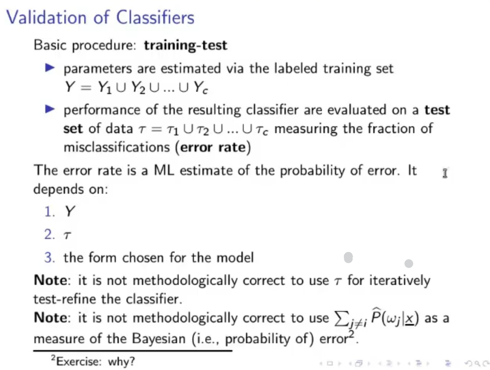 Validation of Classifiers: Given our labeled data we divide it in training set , test set and validation set , then: