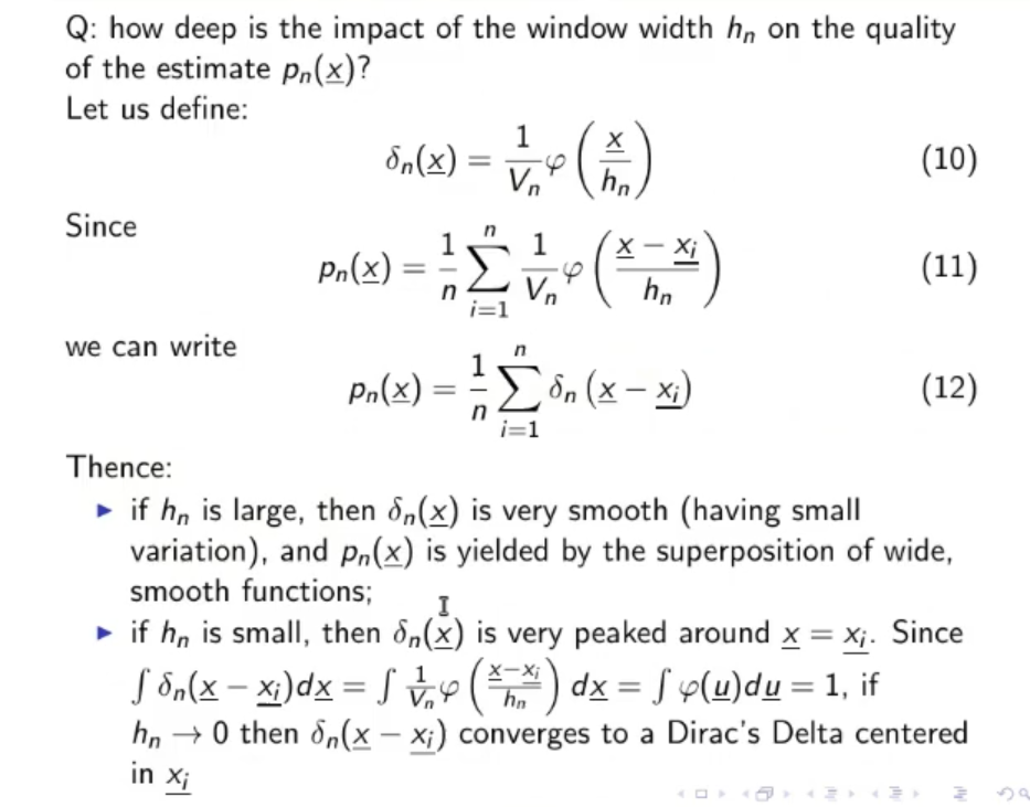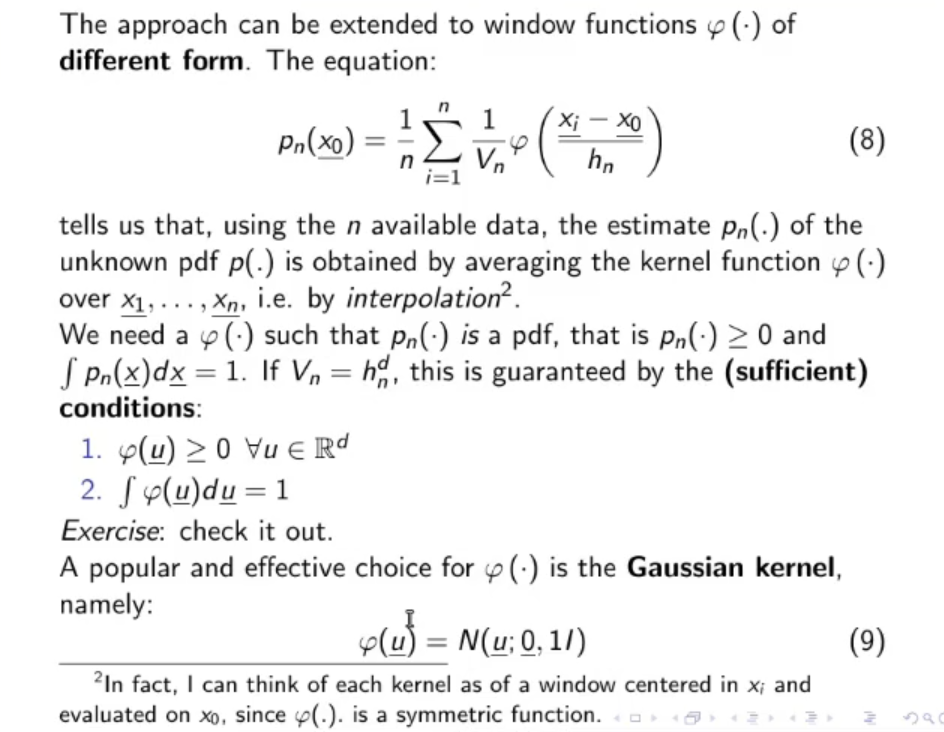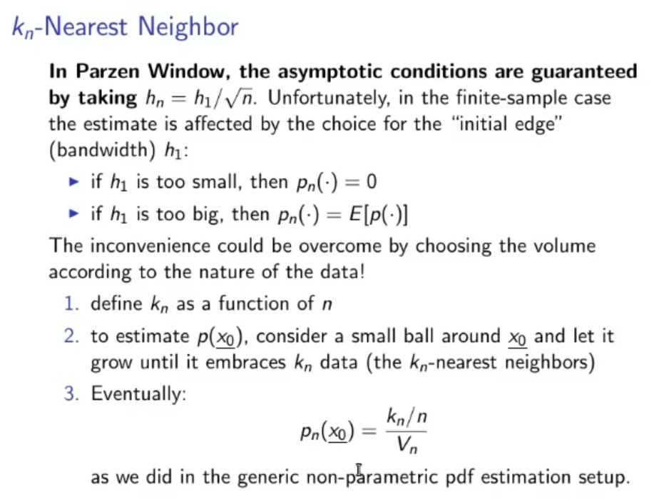 NOTE: Also, no matter the type of function , we can just take where is an hyperparameter decided arbitrarily, and we can guarantee, as seen in the previous lecture, that the estimated pdf will converge to the actual pdf , as the number of data .