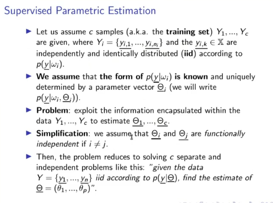- Parametric Estimation: we search for the parameters () that describe a PDF of an arbitrary form, so we can calculate