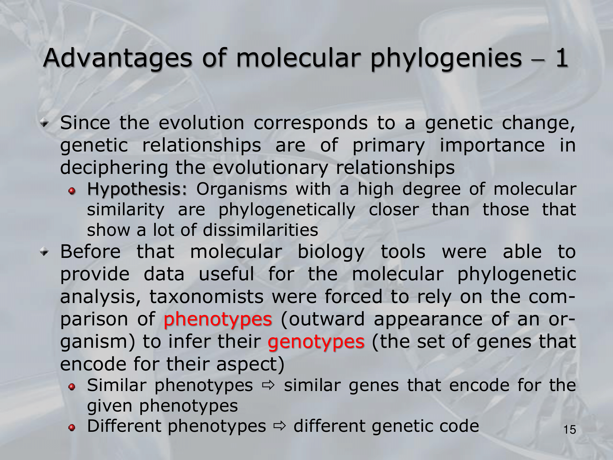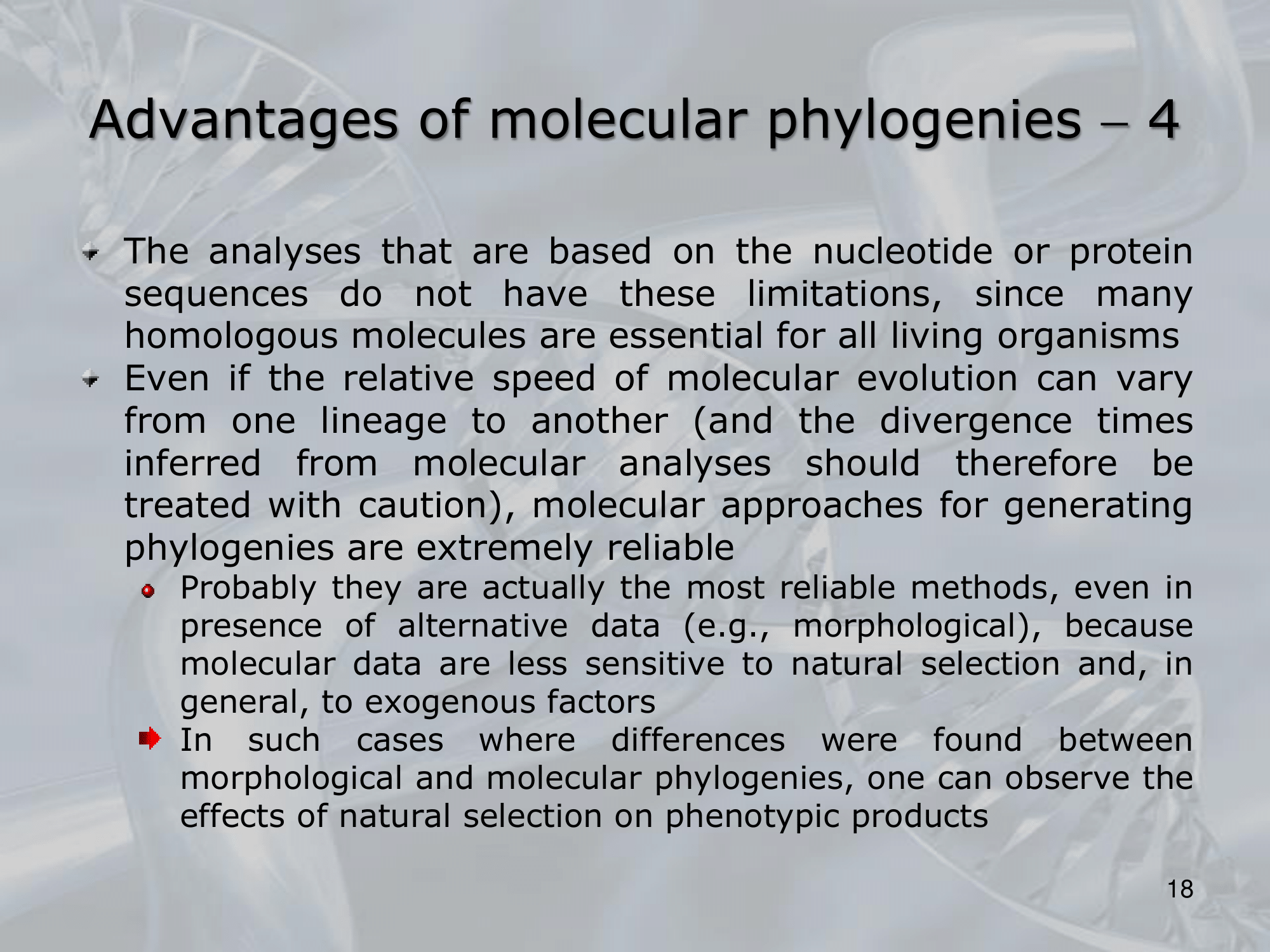 - Objectivity: Molecular phylogenies provide an objective way to study evolutionary relationships among organisms, as they are based on objective genetic data rather than subjective morphological characters.