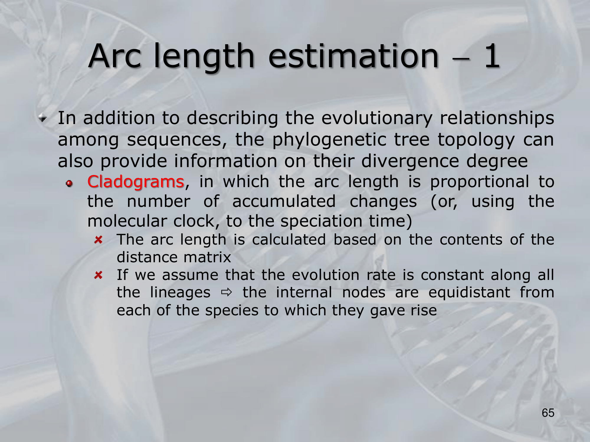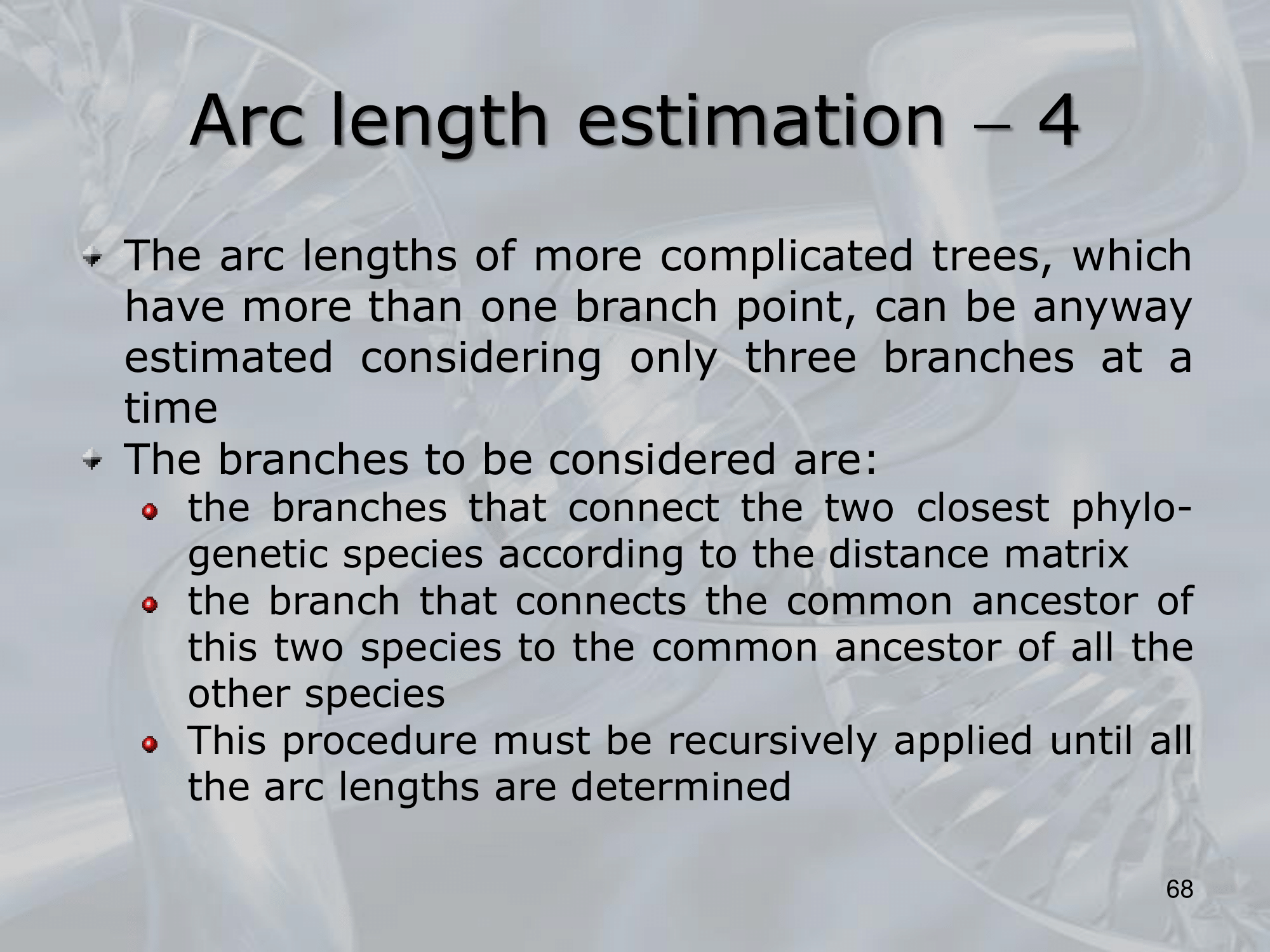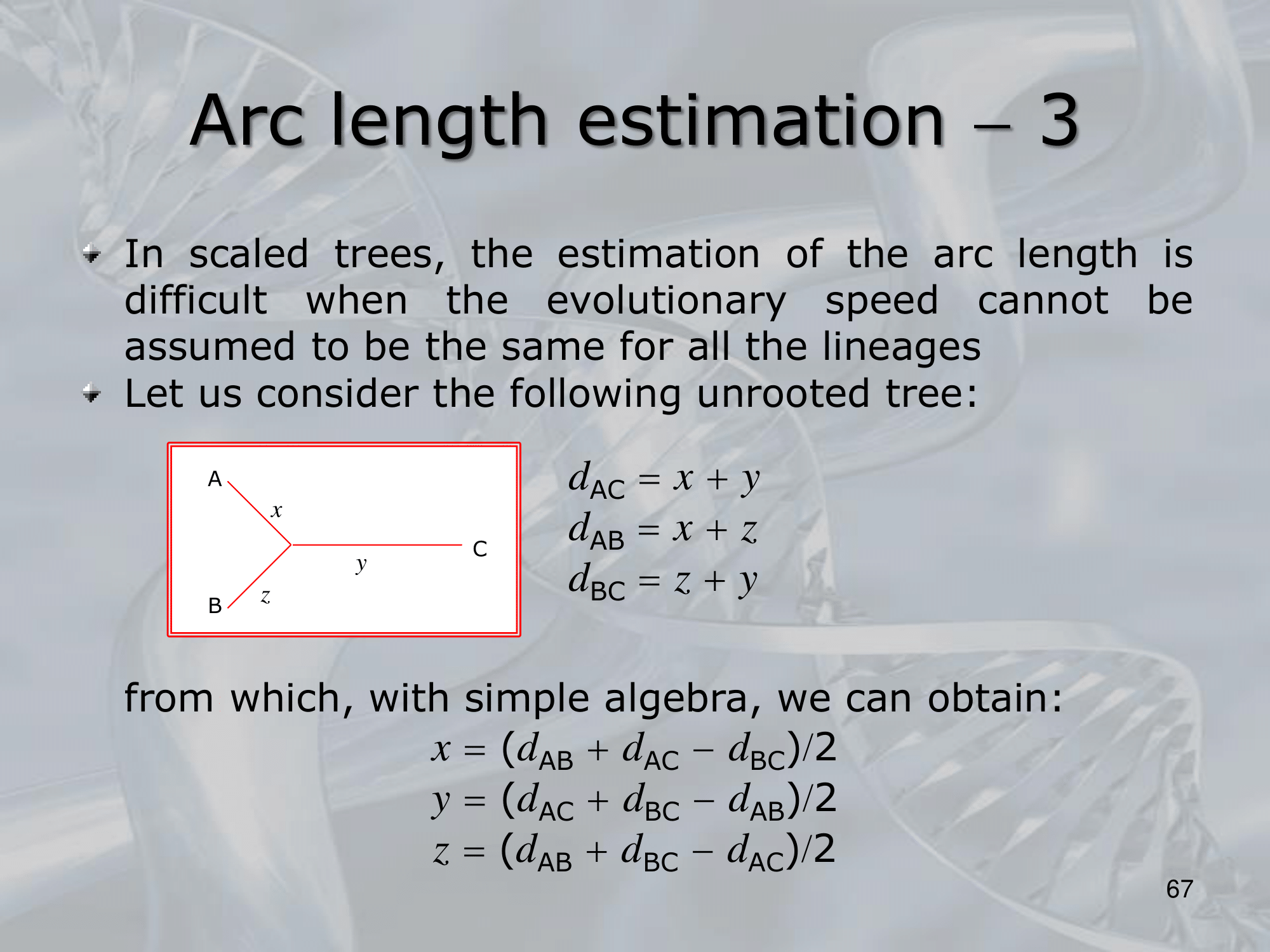 - To correctly estimate the arc length in phylogenetic trees, one needs to consider the branch lengths and the topology of the tree.