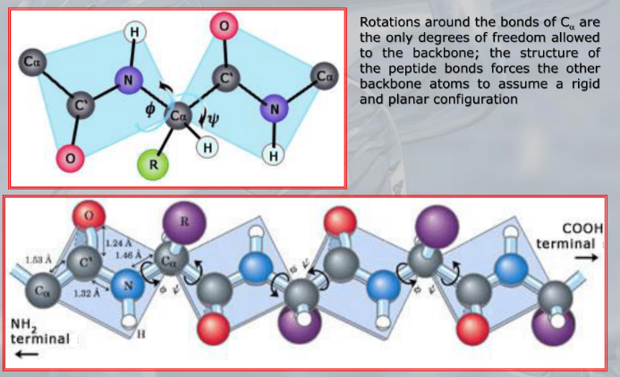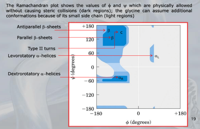 Lâunica parte mobile in un polipeptida sono gli angoli e di ogni residuo. #IMPORTANTE Ovviamente i valori di e di tutti i residui devono essere tali da non formare collisioni steriche ovvero due reisdui non devono mai occupare lo stesso spazio. #IMPORTANTE The Ramachandran Plot:
