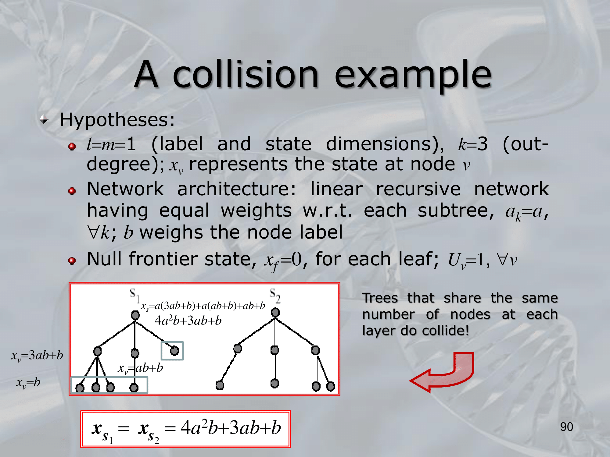 ==When processing a tree structure with an RNN, the network performs a sequence of operations on the nodes of the tree, recursively combining the representations of the child nodes to form the representation of the parent node. However, in some cases, multiple paths in the tree can lead to the same parent node, causing different representations to collide and merge into a single representation==.