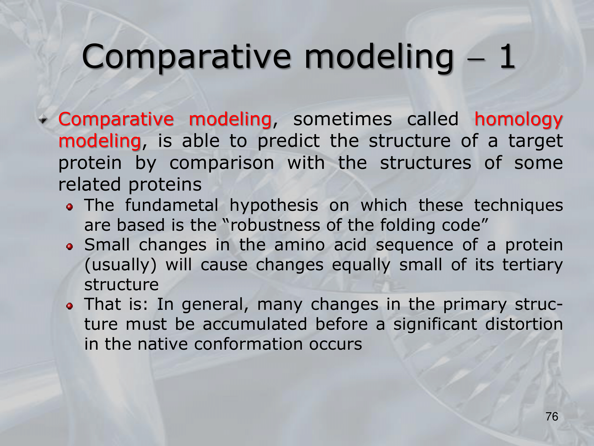 - ==Comparative modeling, also known as homology modeling, is a computational method for predicting the three-dimensional structure of a protein based on its amino acid sequence and the known structure of a homologous protein==.