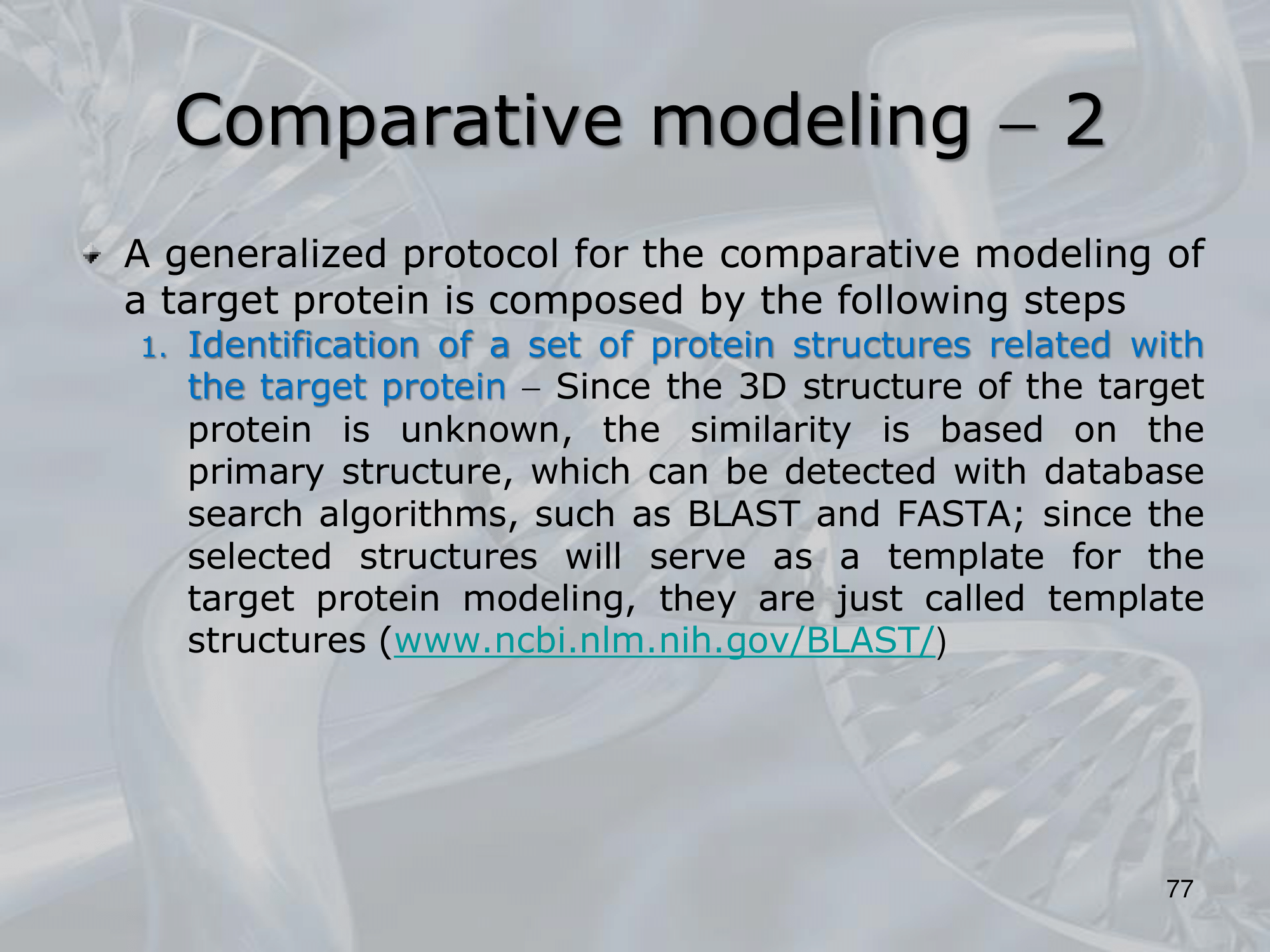 - Identification of a set of protein structures realted to the target protein.