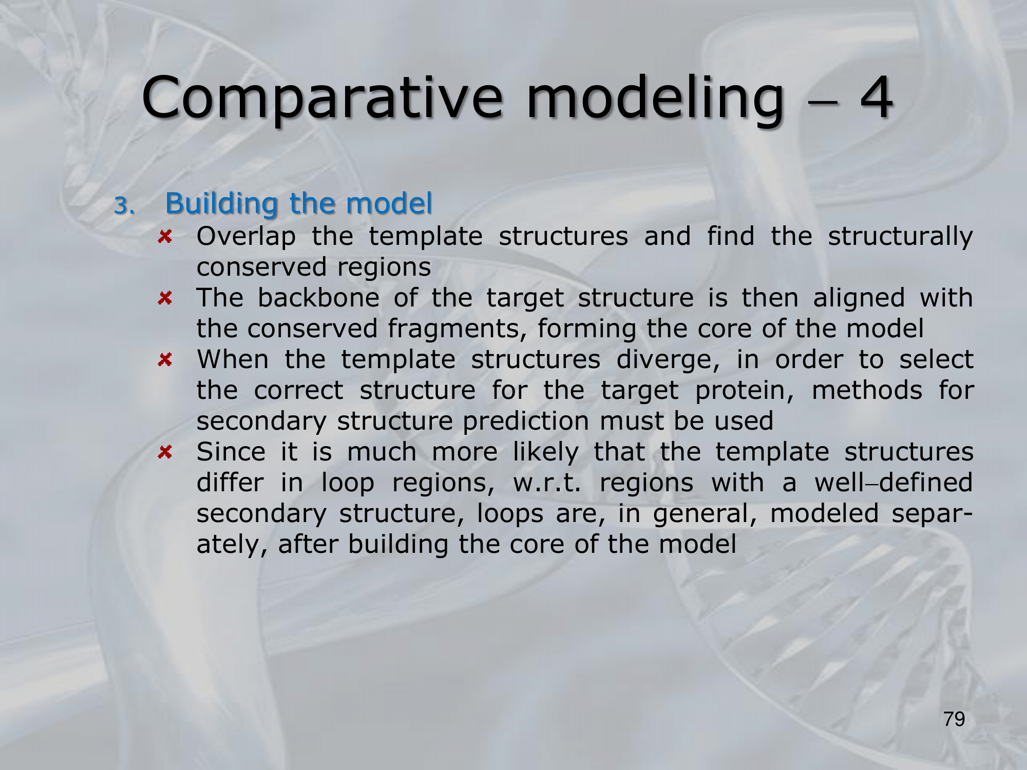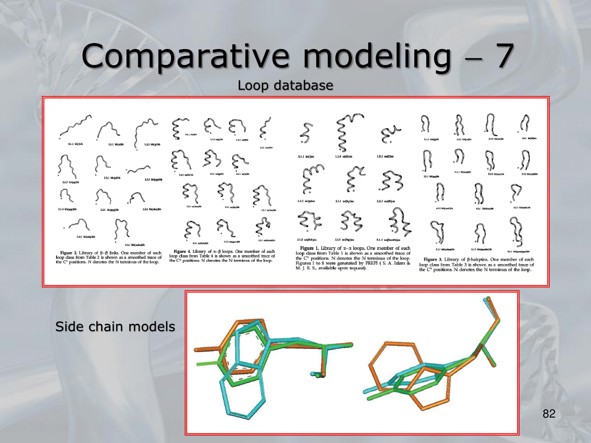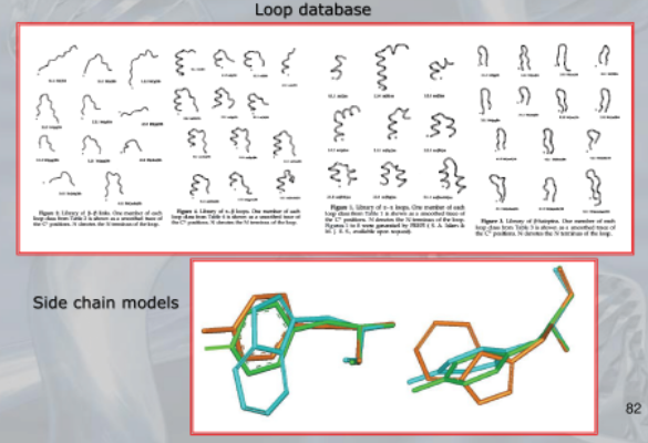 - Building the model: we overlap the loops (the backbone of the protein) and then using already known protein we build the loop and the sidechain
