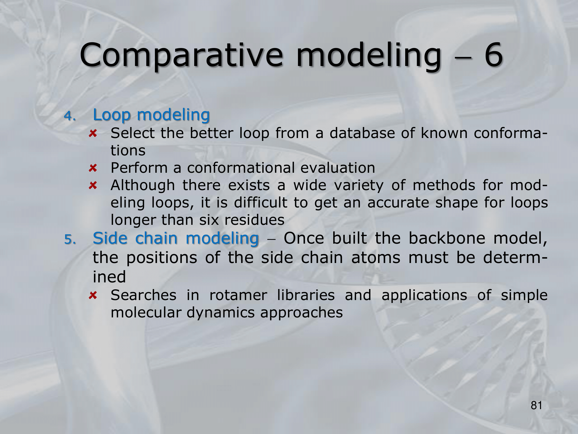 - Side Chain Modelling: using rotaries libraries