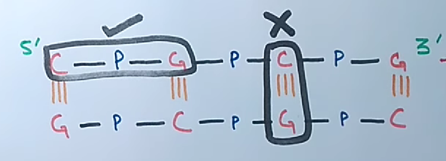 IMPORTANTE CpG Suppression CpG dinucleotides are rarely found outside of promoter regions, due to CpG suppression. CpG dinucelotides are prone to methalyation: That is the process of cythosine A specif enzyme, DNA methylase, attacs the methyl group to the cythosine, but only when it is present in dinucleotides . ==Due to methalyation and then deamination, the Cythosine of CpG dinucleotides, can turn into Tymine==.