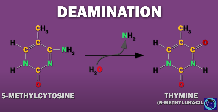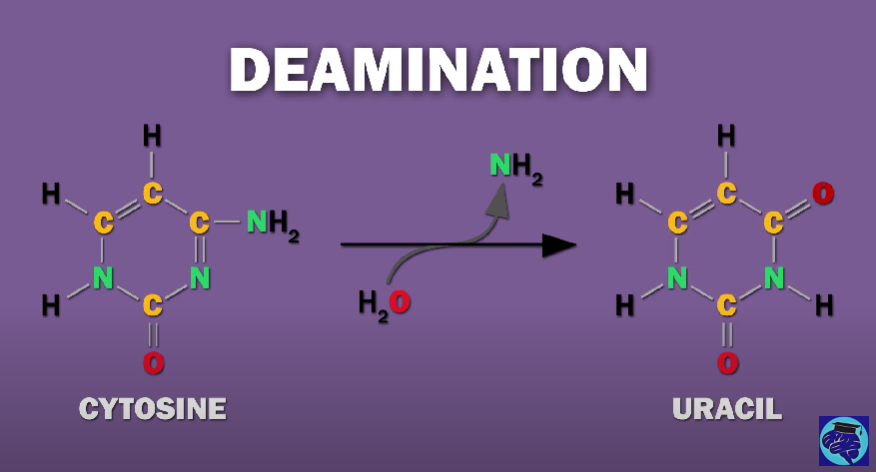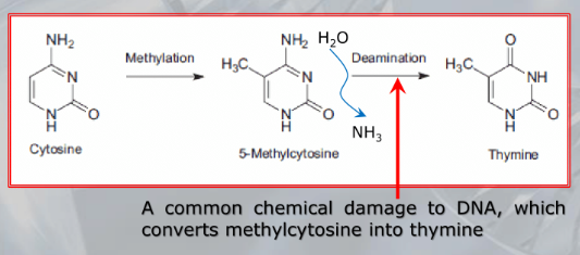IMPORTANTE Deamination: A common chemical damage that can happen on the DNA: Due to deamination a cythosine becomes an uracil