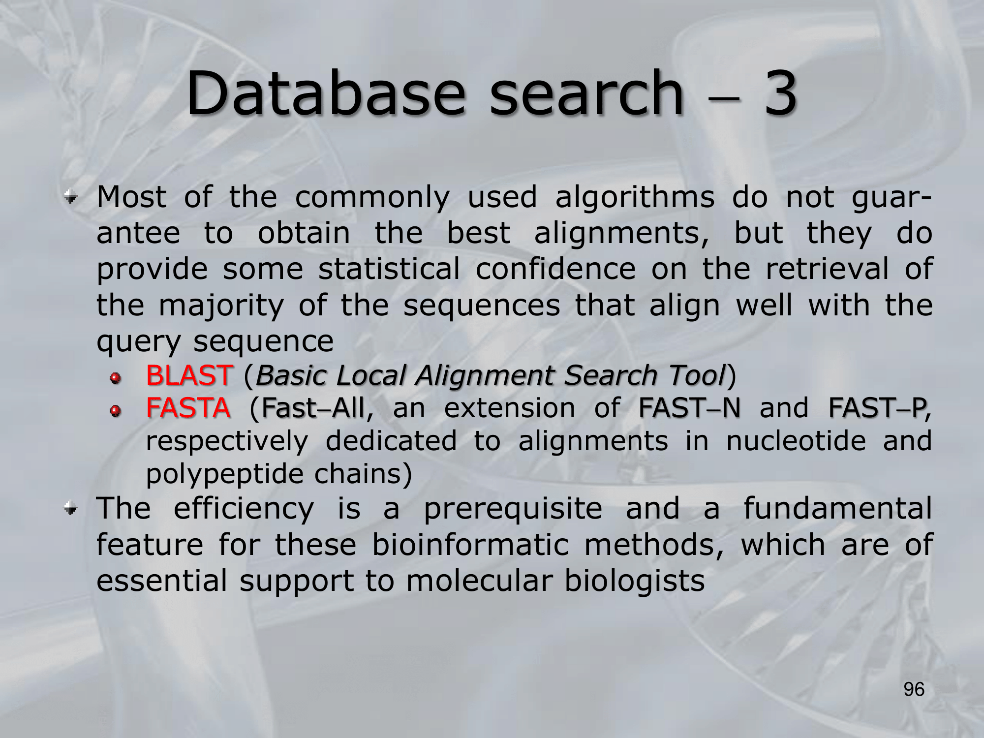 IMPORTANTE Algorithms used for Database Search: