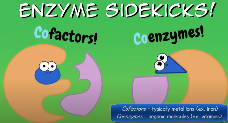 - Coenzymes: organic molecules (~ex.: vitamins)