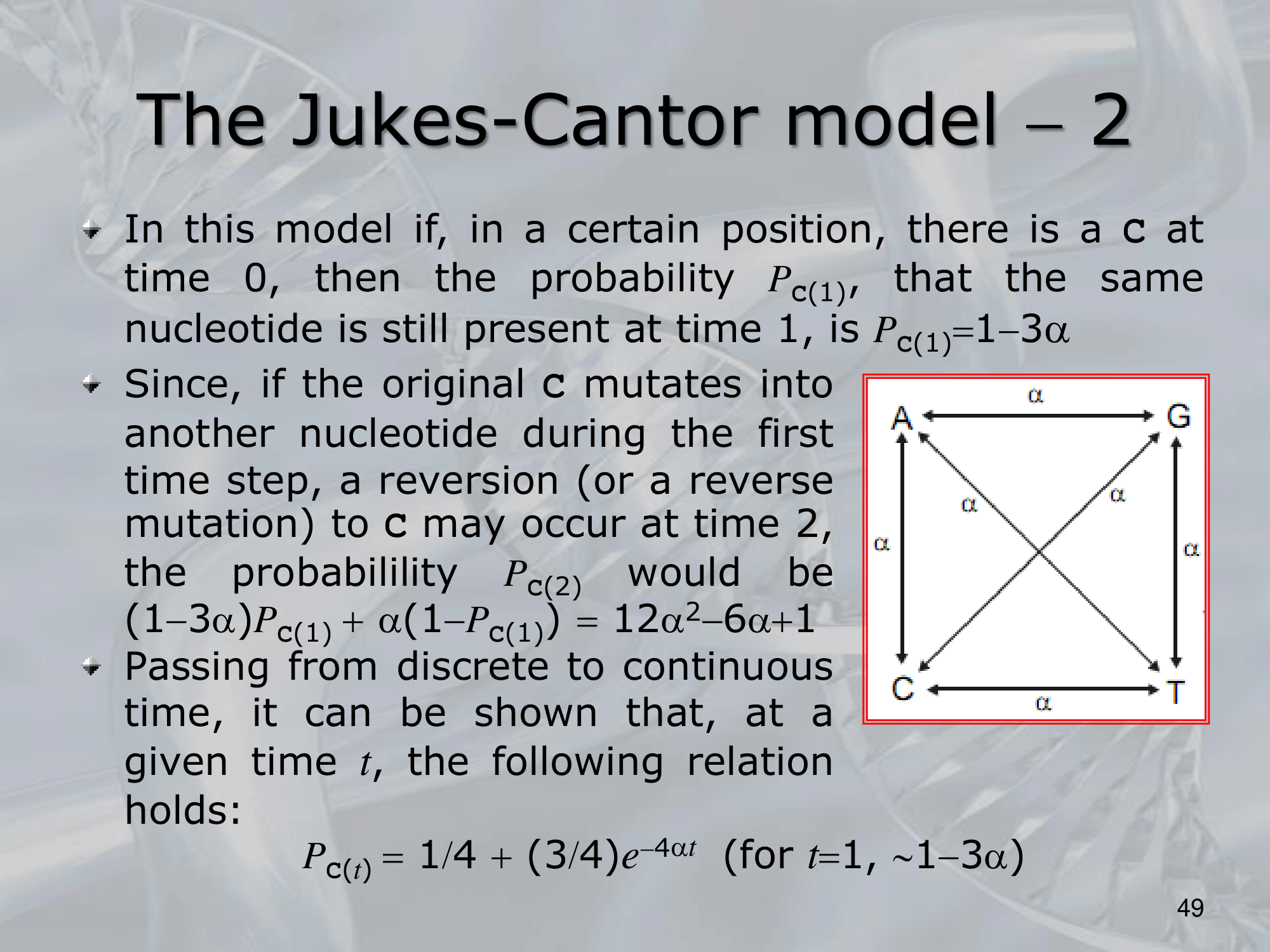 - The James-Cantor model can be extended to include more complex evolutionary scenarios, such as changes in the substitution rates over time or among different lineages. However, the basic model provides a useful framework for understanding the evolution of DNA sequences and for estimating the amount of evolutionary change between different sequences.