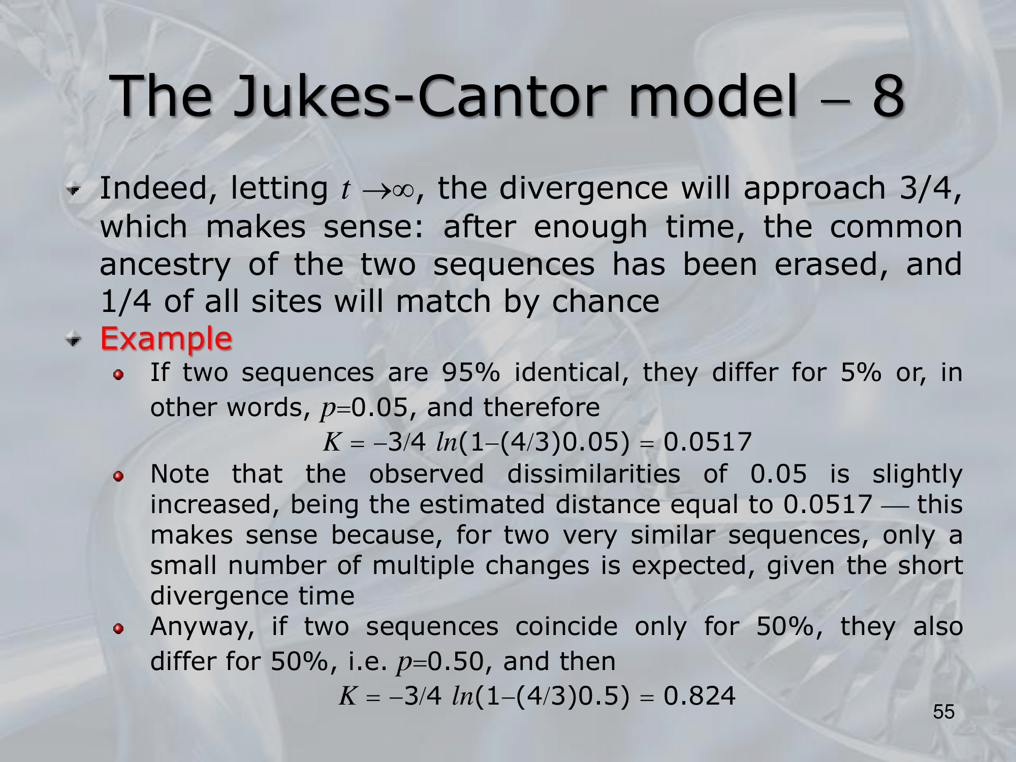 - The expected number of substitutions between two sequences is then calculated using the following formula: