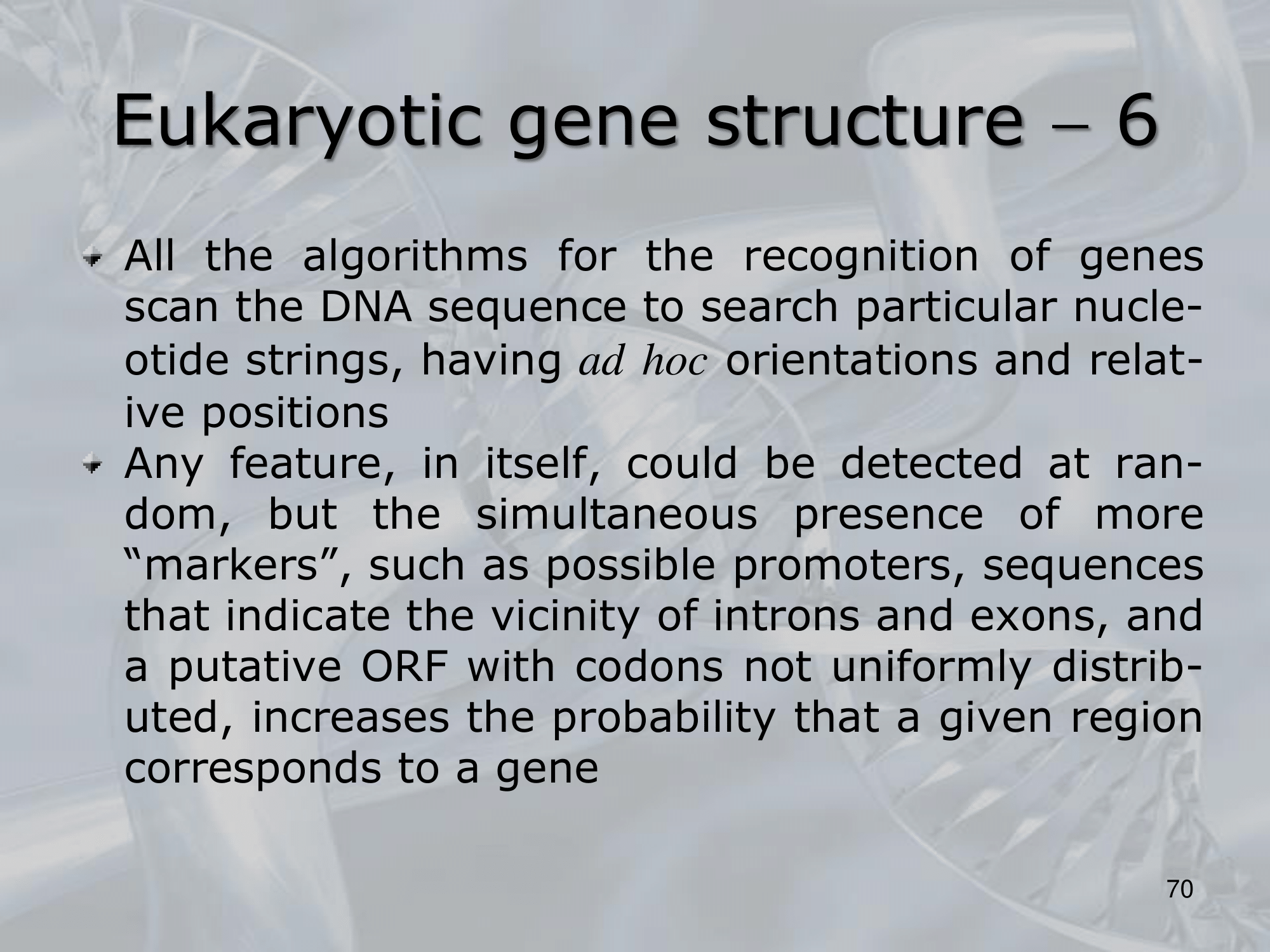 IMPORTANTE One of the best way we have at the moment to find eukaryotic genes in their DNA is to search for a region where many âgene markersâ are located, such as: