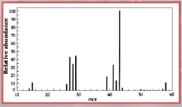 IMPORTANTE Mass Spectrometry: In mass spectometors samples may be introduced in any state (solid, liquid, gas) If the substance is solid or liquid it needs to be made volatile, before entering the ionization phase, during which the molecules of the compound are ionized, in the most common case by the interaction with an electron beam The ionized molucules are then “curved” by a magnetic field, finally these molecules collide with a “collector” placed at the end of the analyzer, such collision generate an electrical current that can be registered and measured, we will obtain a series of peaks of current. In the mass spectrum graph the -axis shows the values of the ratio. The -axis is the relative abundance of the analyzed ions.
