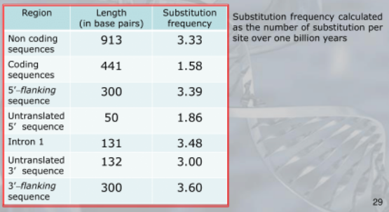 - Infine, meno rapidametne nelle sequenze codificanti.