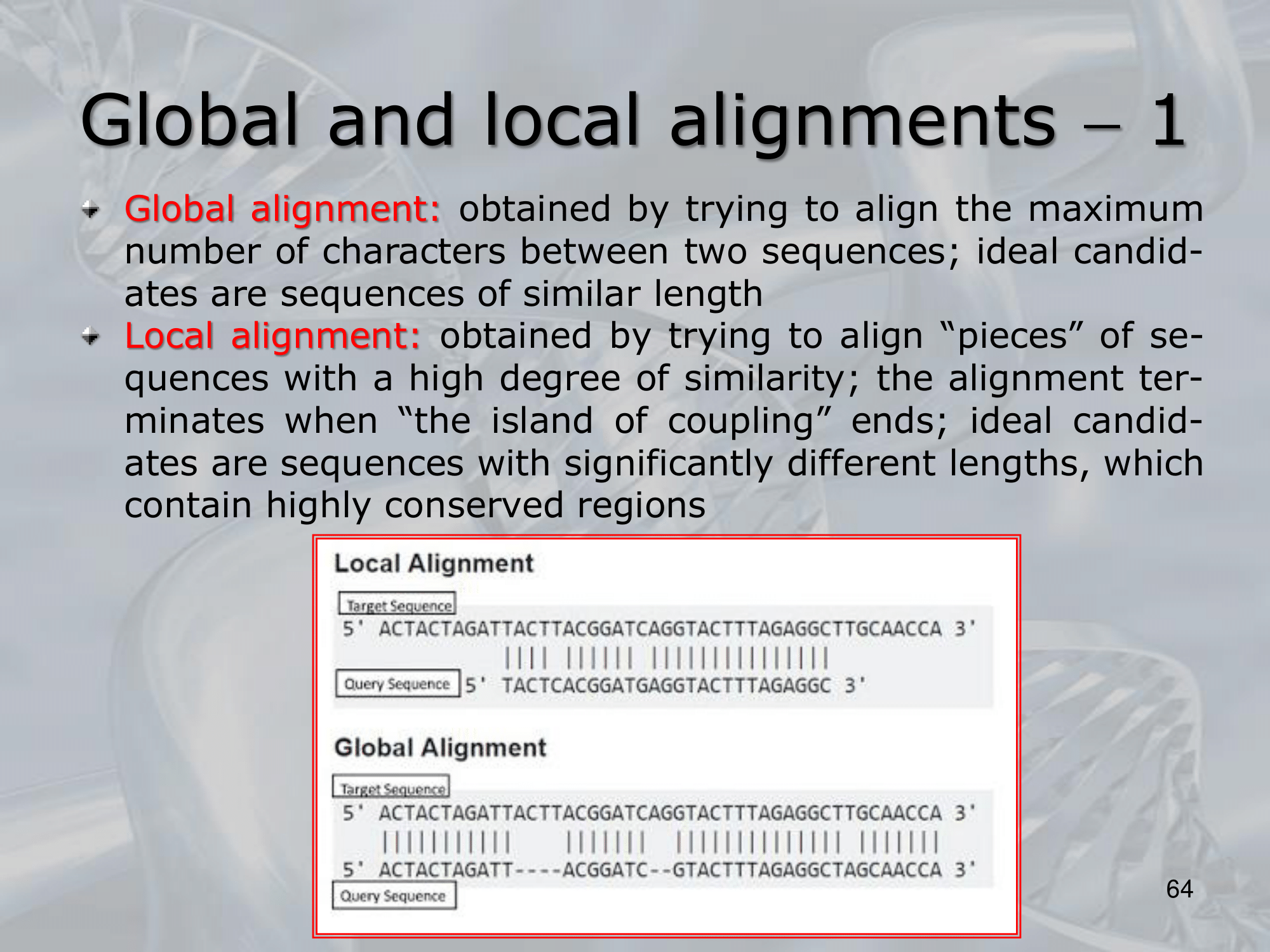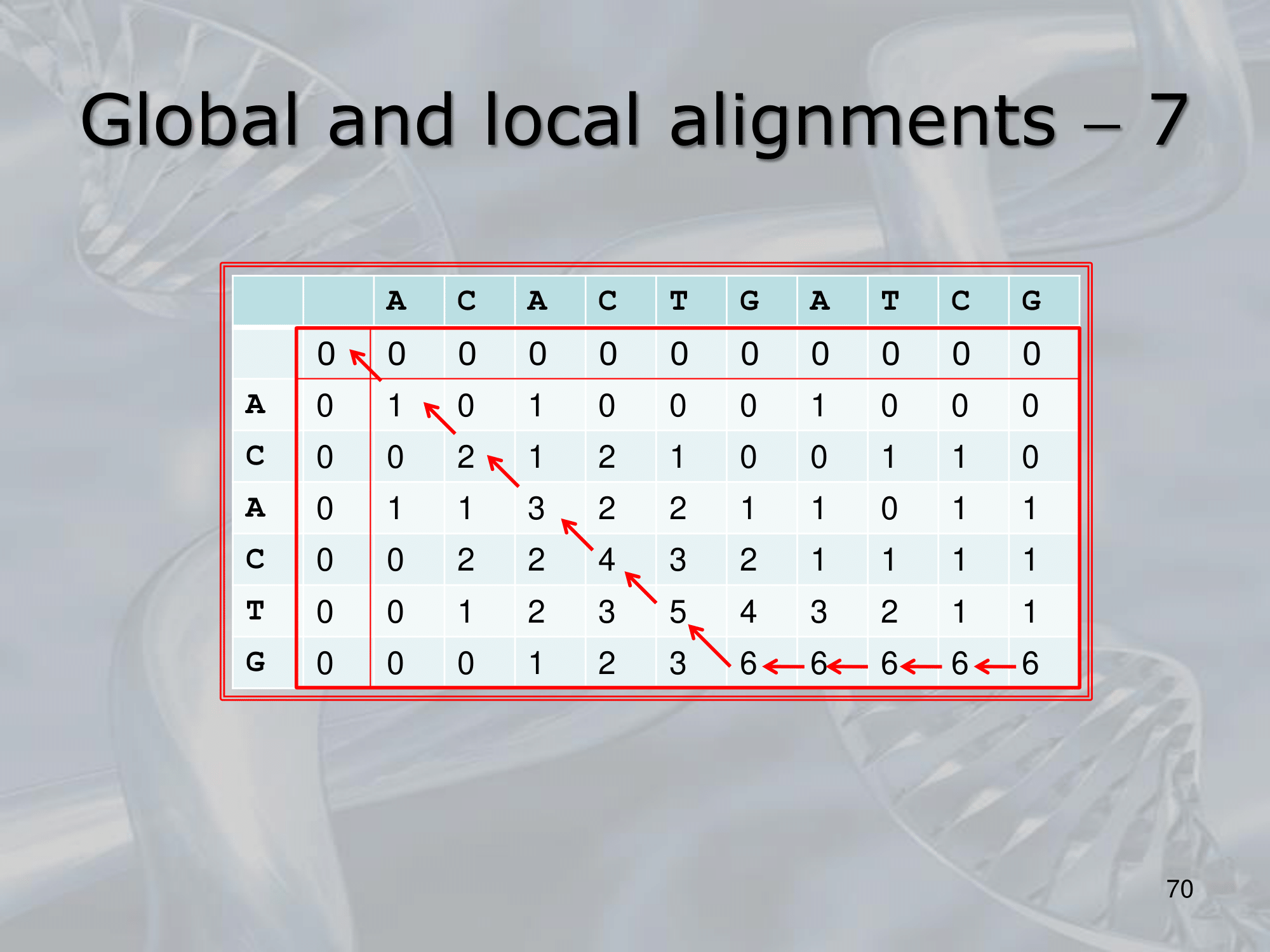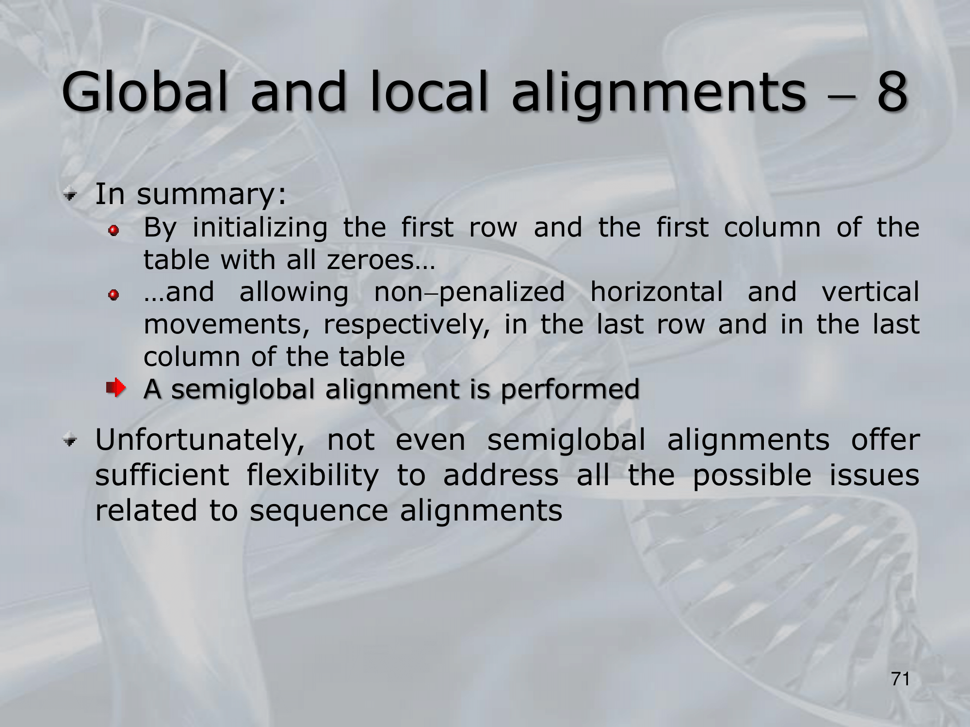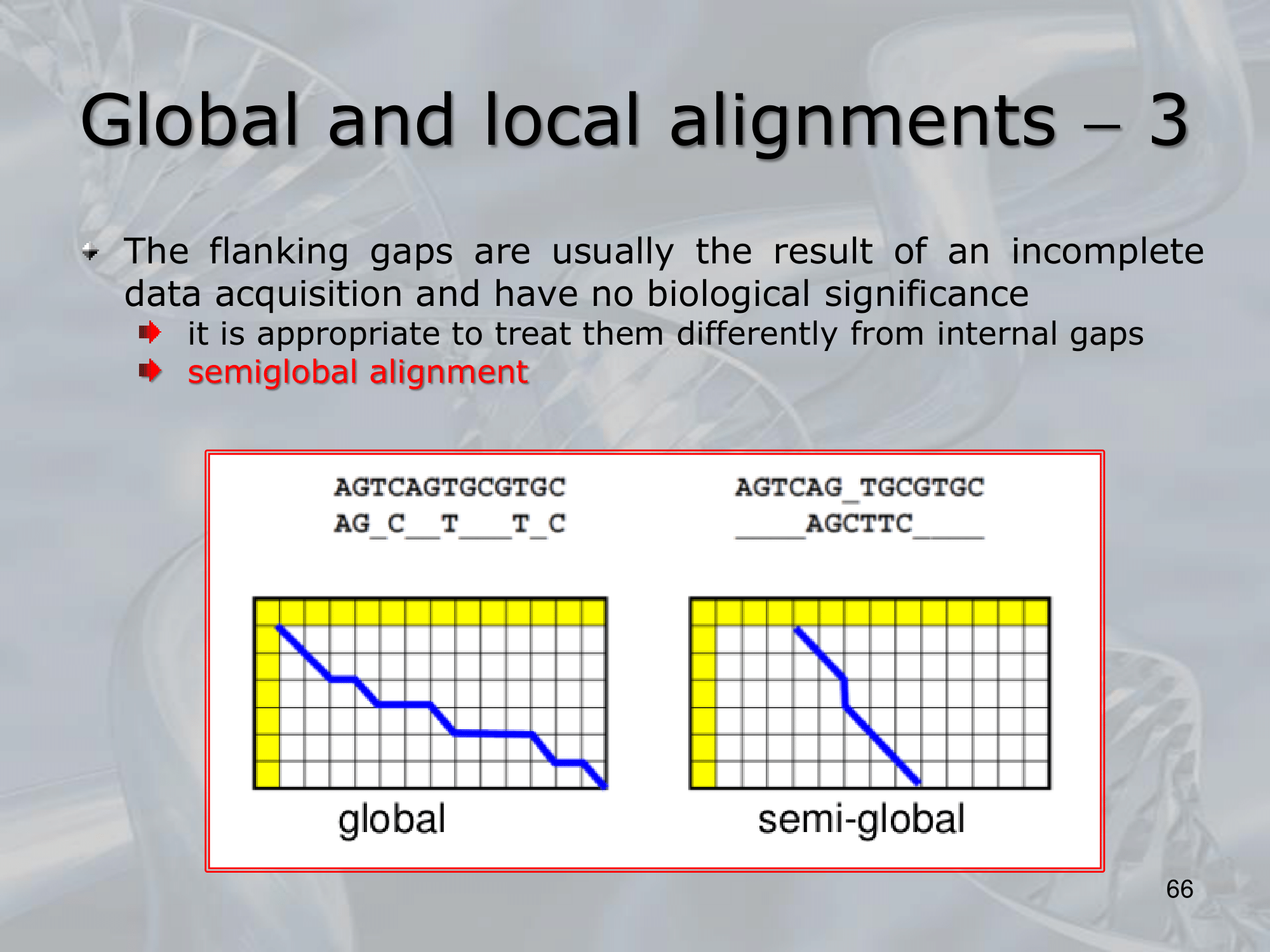 IMPORTANTE Global and Semi-Global Alignments: The Needleman-Wunsch Algorithm preferes the global alignment, but we can change it to make it return the optimal solution for local alignment: