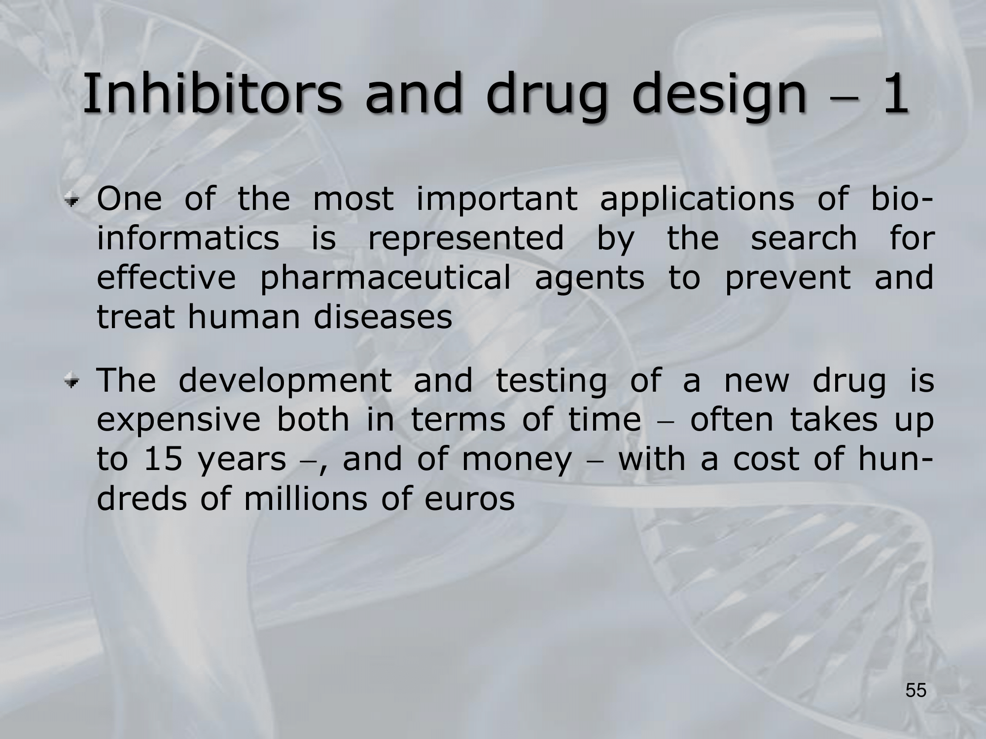 IMPORTANTE The development and testing of new drugs takes up to 15 years, and hundreds of million of euros.