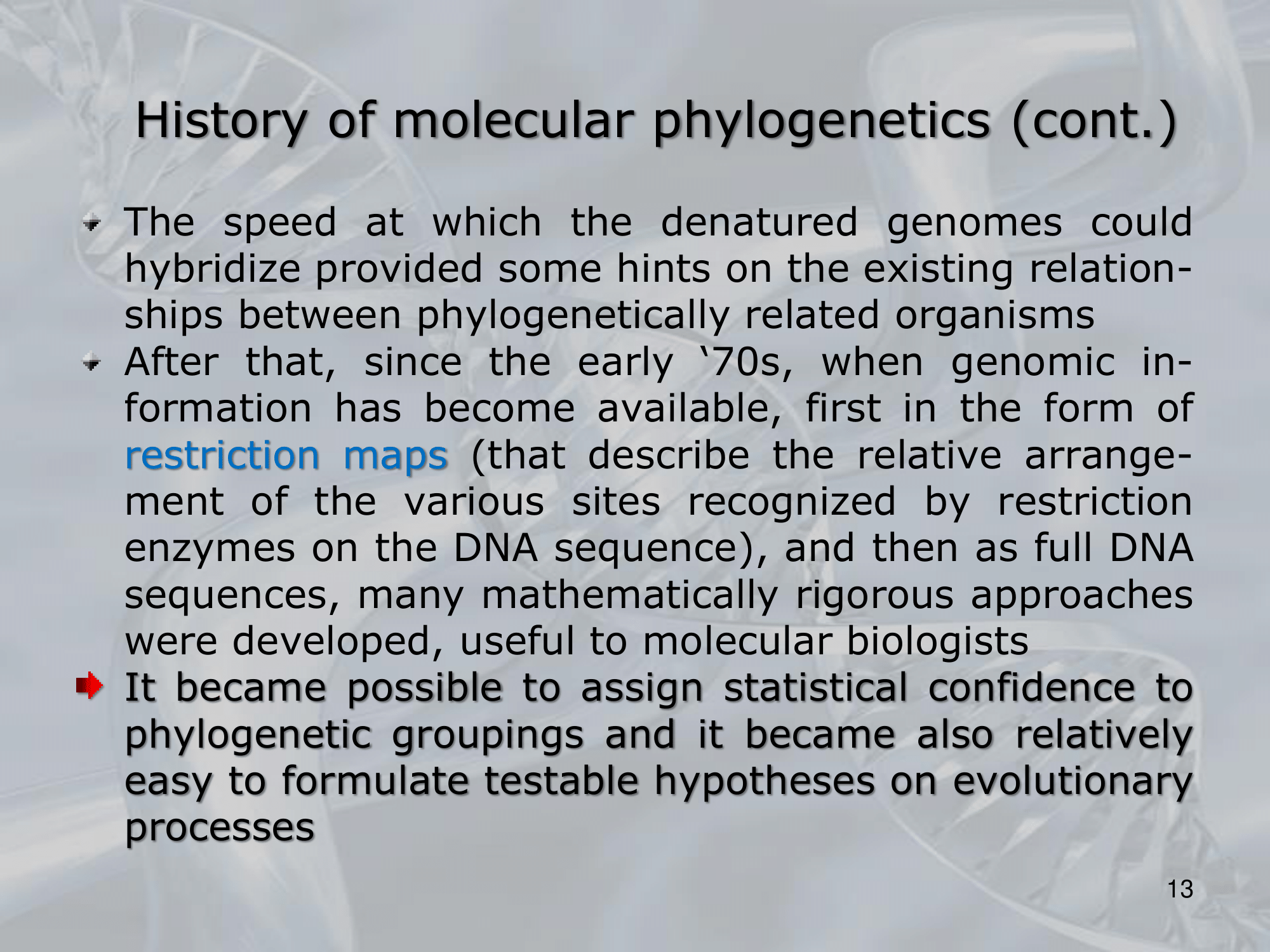 IMPORTANTE Con il sequenziamento del DNA e strumenti matematici è stato possibile assegnare una confidenza statistica al raggruppamento filogenetico, inoltre è stato possibile formulare ipotesi testabili sui processi evolutivi.