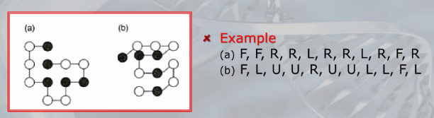 #IMPORTANTE We need to avoid steric collision, for example if we go like L, L, L, L, in the relative representation we will return to the (0,0) starting point creating a collision of two residues (calld a steric collision).