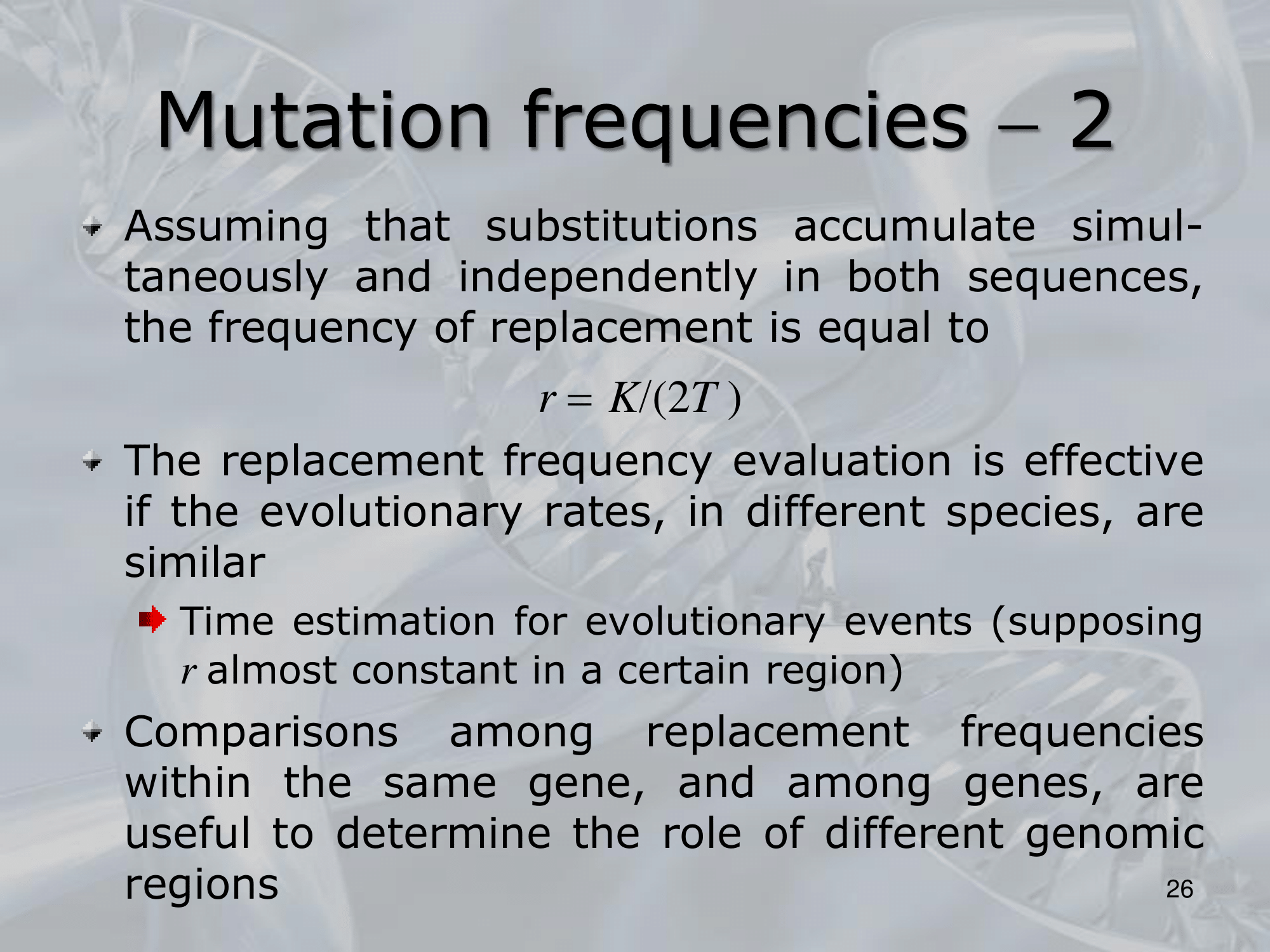- Overall, the replacement frequency is an important measure in molecular evolution that provides insights into the functional changes and selective pressures acting on different genes and proteins.