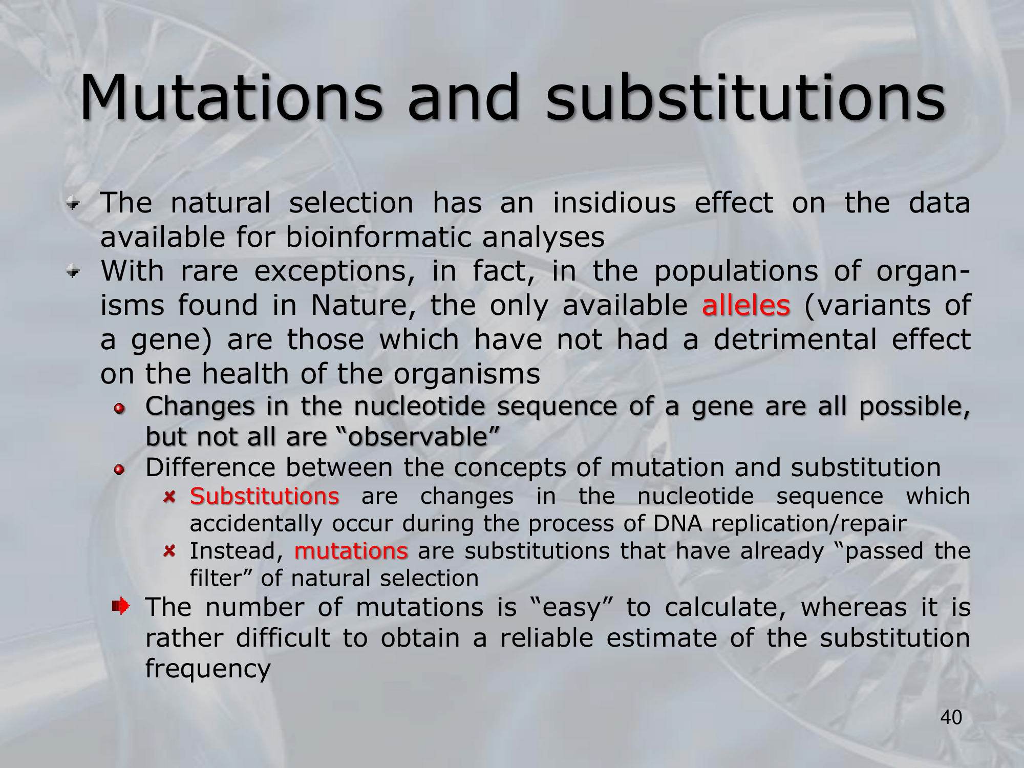 Il numero di mutazioni è facile da calcolare, il numero di sostituzioni è quasi impossibile.