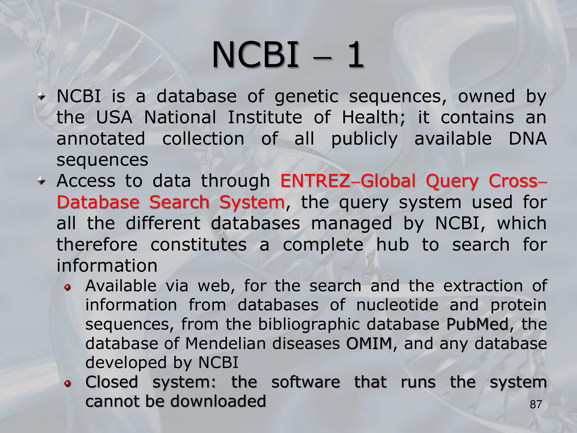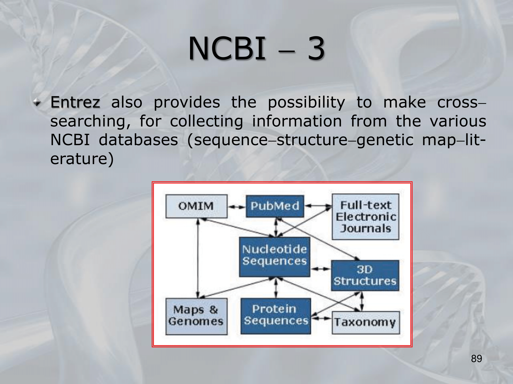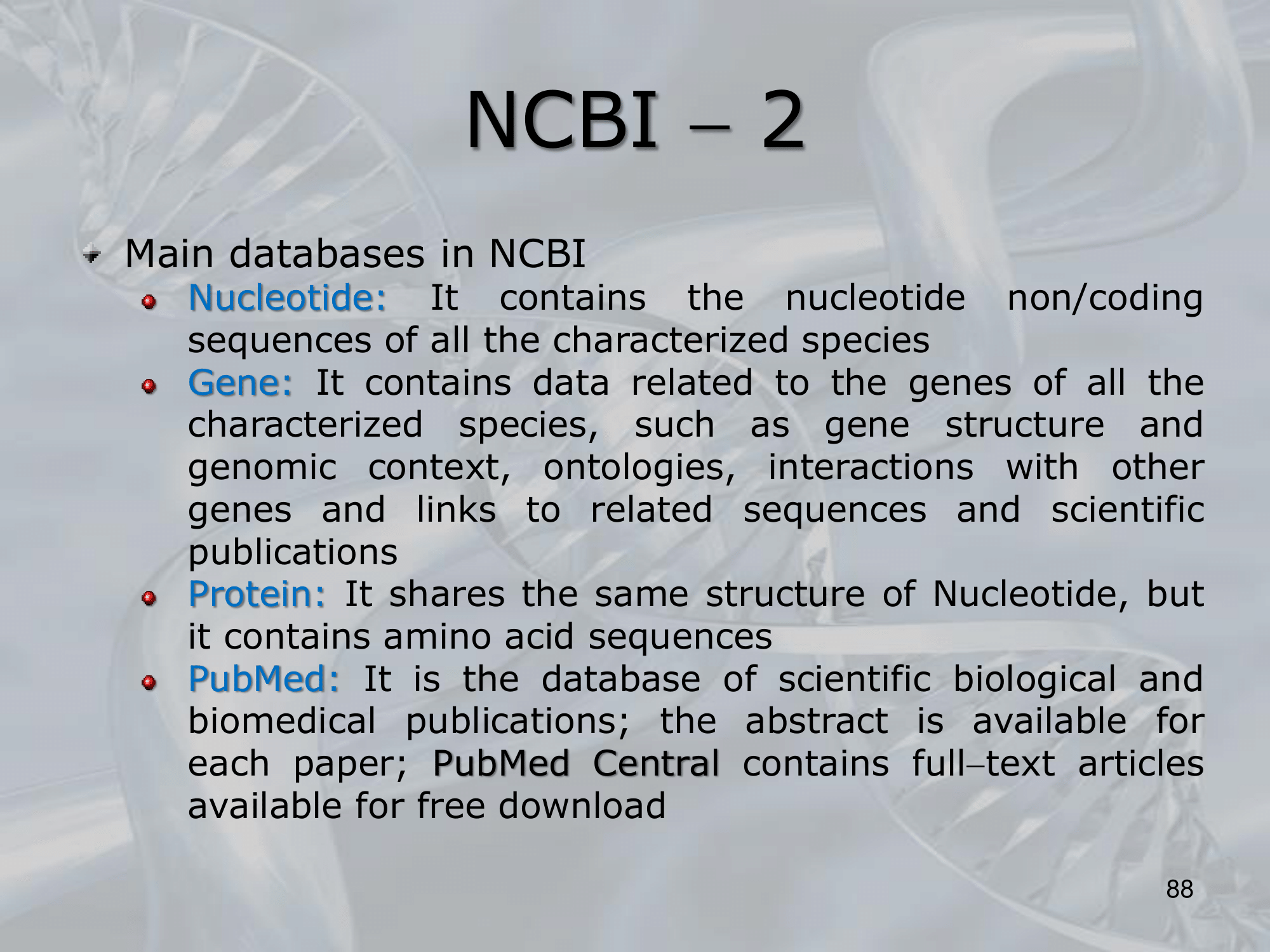 IMPORTANTE NCBI: Collection of databases, in which we can cross-search the same molecule. The databases in NCBI are:
