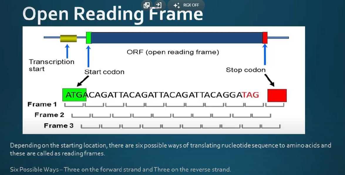 Bioinformatics tools can be used to scan DNA or RNA sequences for potential ORFs, and the resulting ORF predictions can be further analyzed to determine their function, expression, and potential role in cellular processes. - Overall, ORFs provide a useful framework for the analysis of potential protein-coding genes within a genome, and can be a valuable tool for understanding the genetic information encoded within a DNA or RNA sequence.