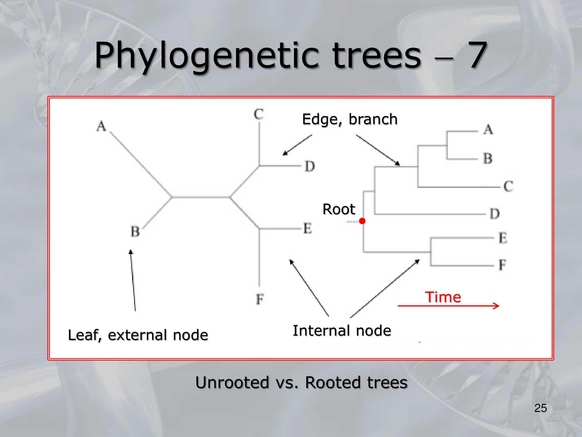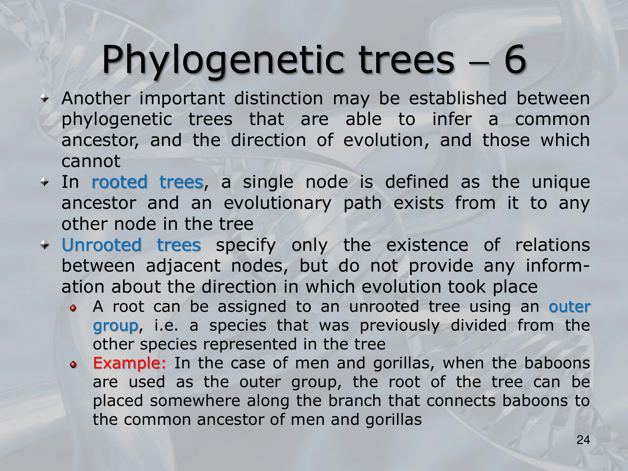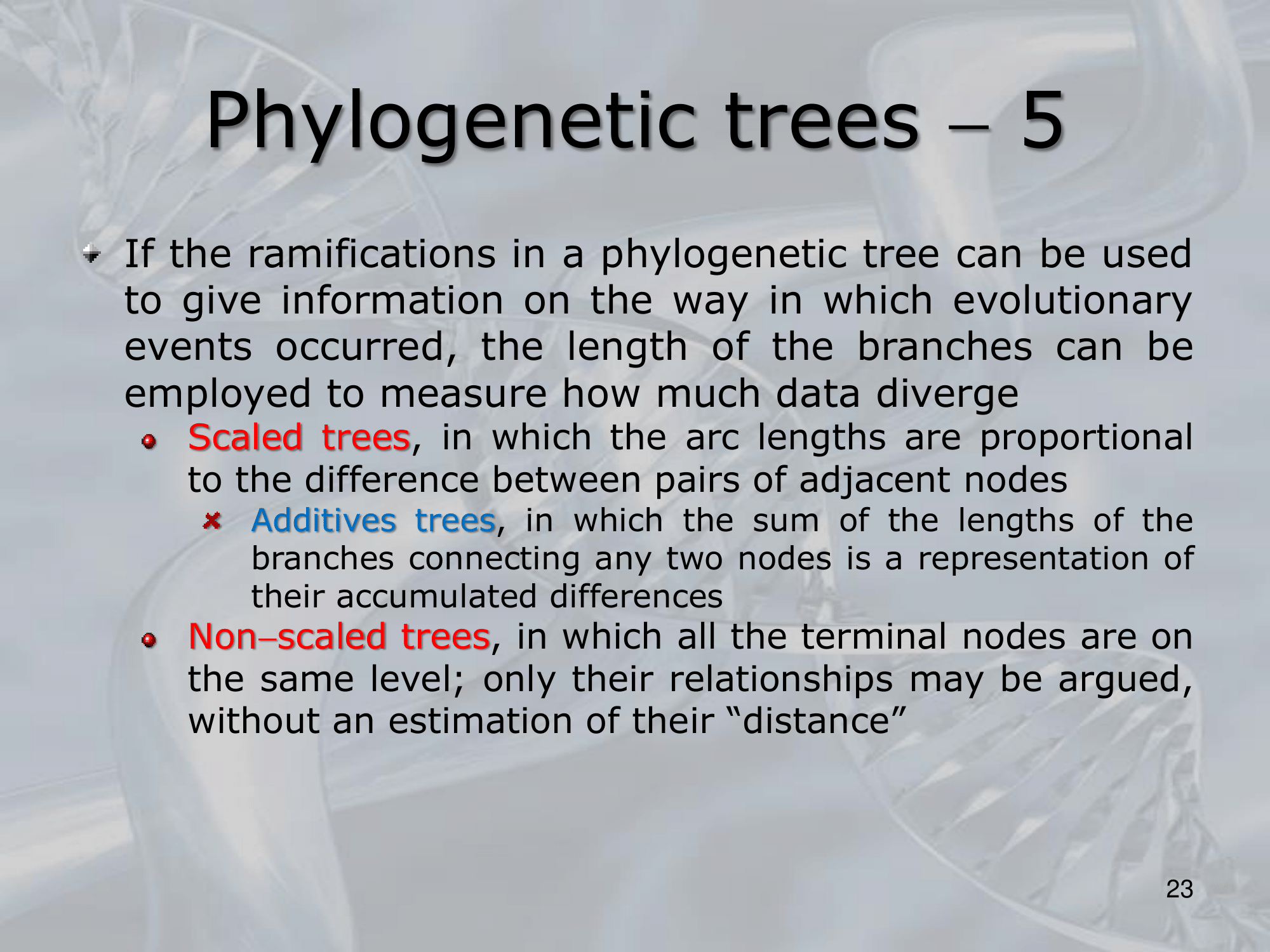 IMPORTANTE Alberi scalati: gli archi degli alberi hanno un valore, inteso come distanza di anni (milioni di anni tipicamente) che passano tra un nodo e il suo common ancenstor. Mentre alberi non-scalati sono quelli in cui si considera solo la parentela.