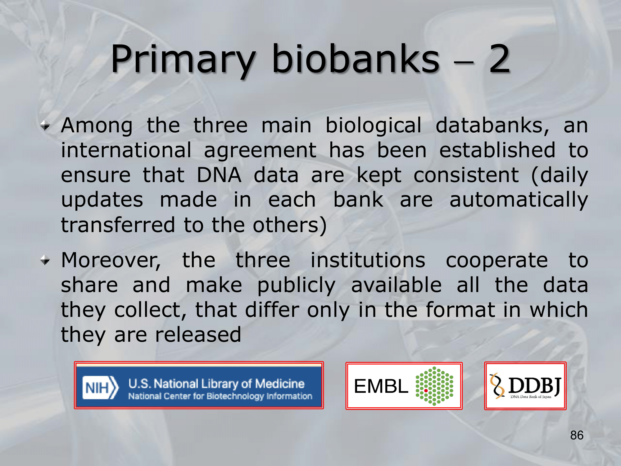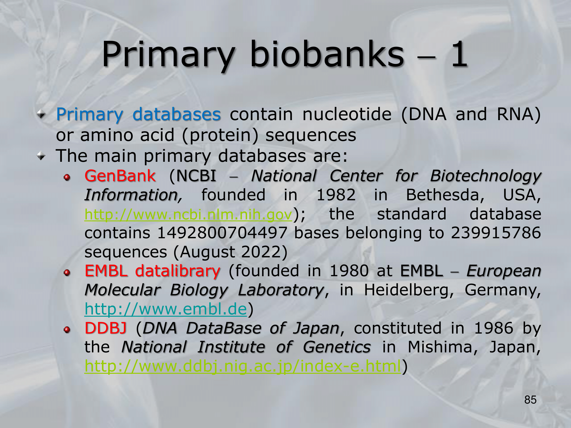 IMPORTANTE Primary Biobanks Contain nucelotide and amino acids sequences.