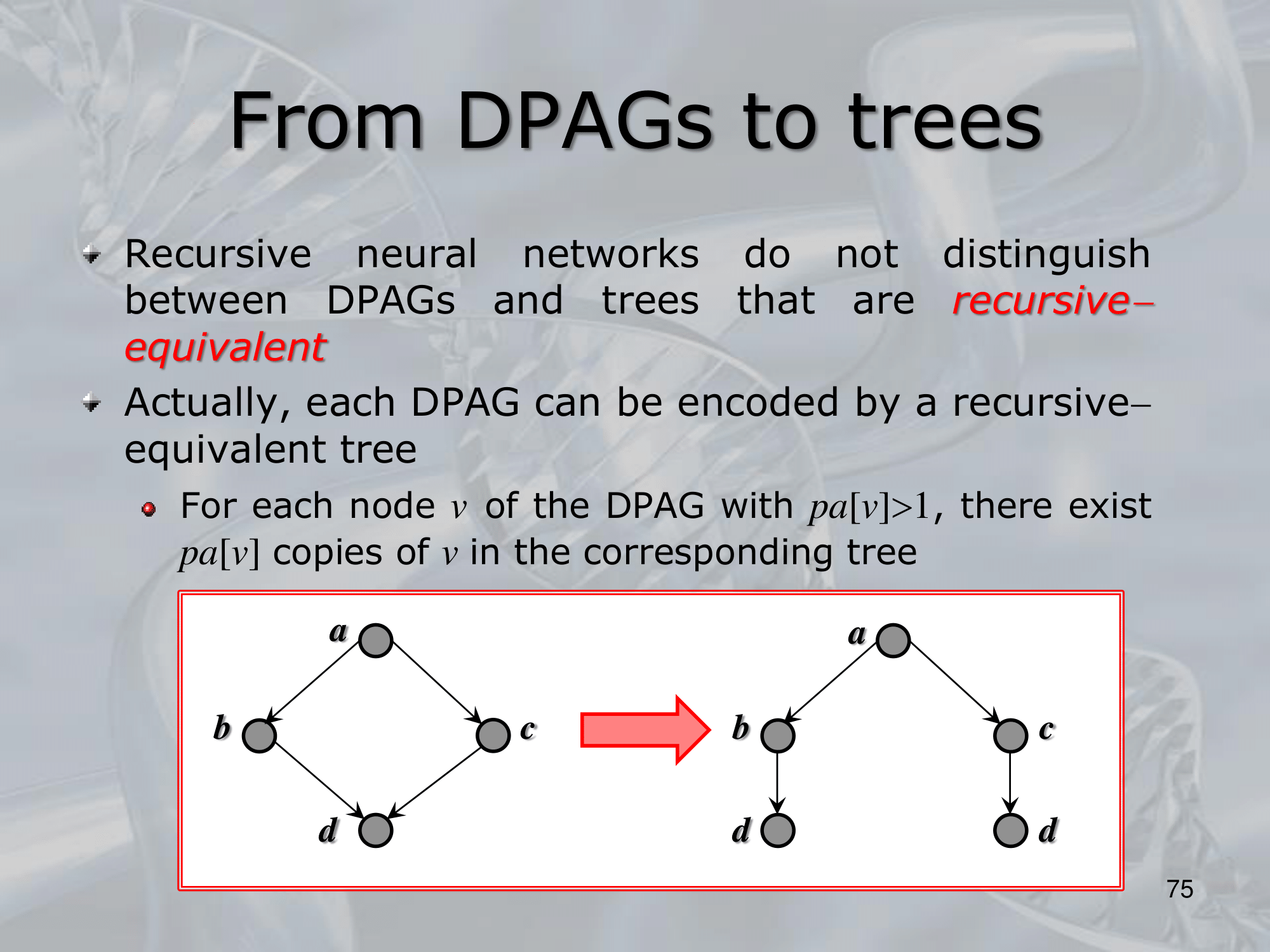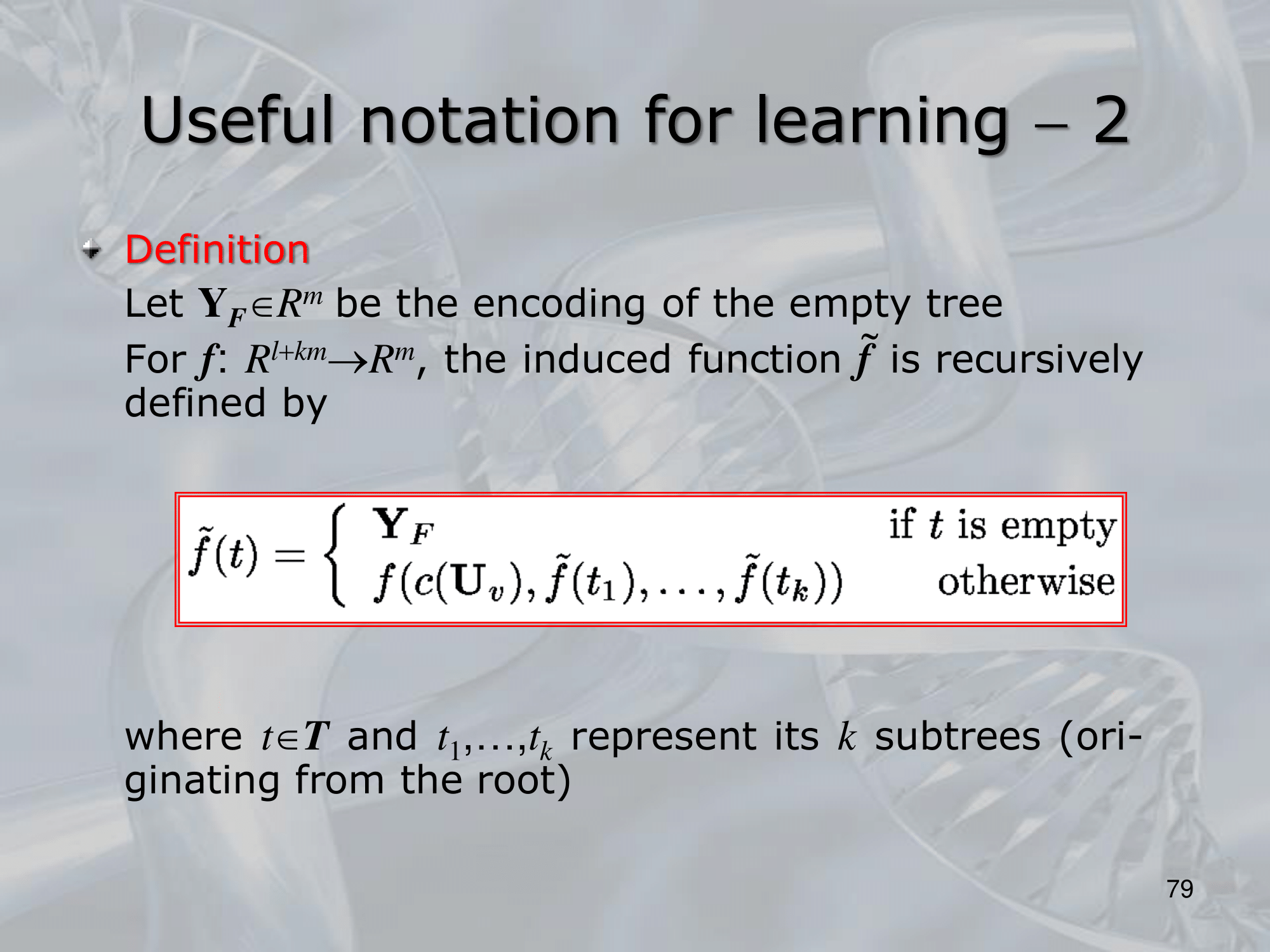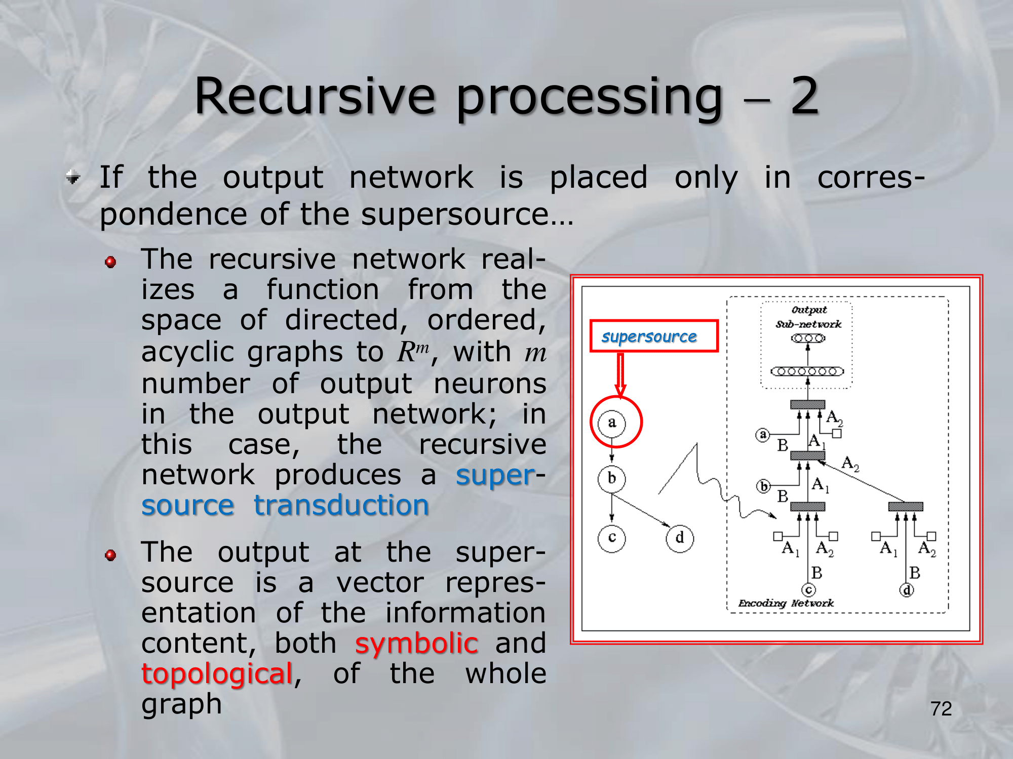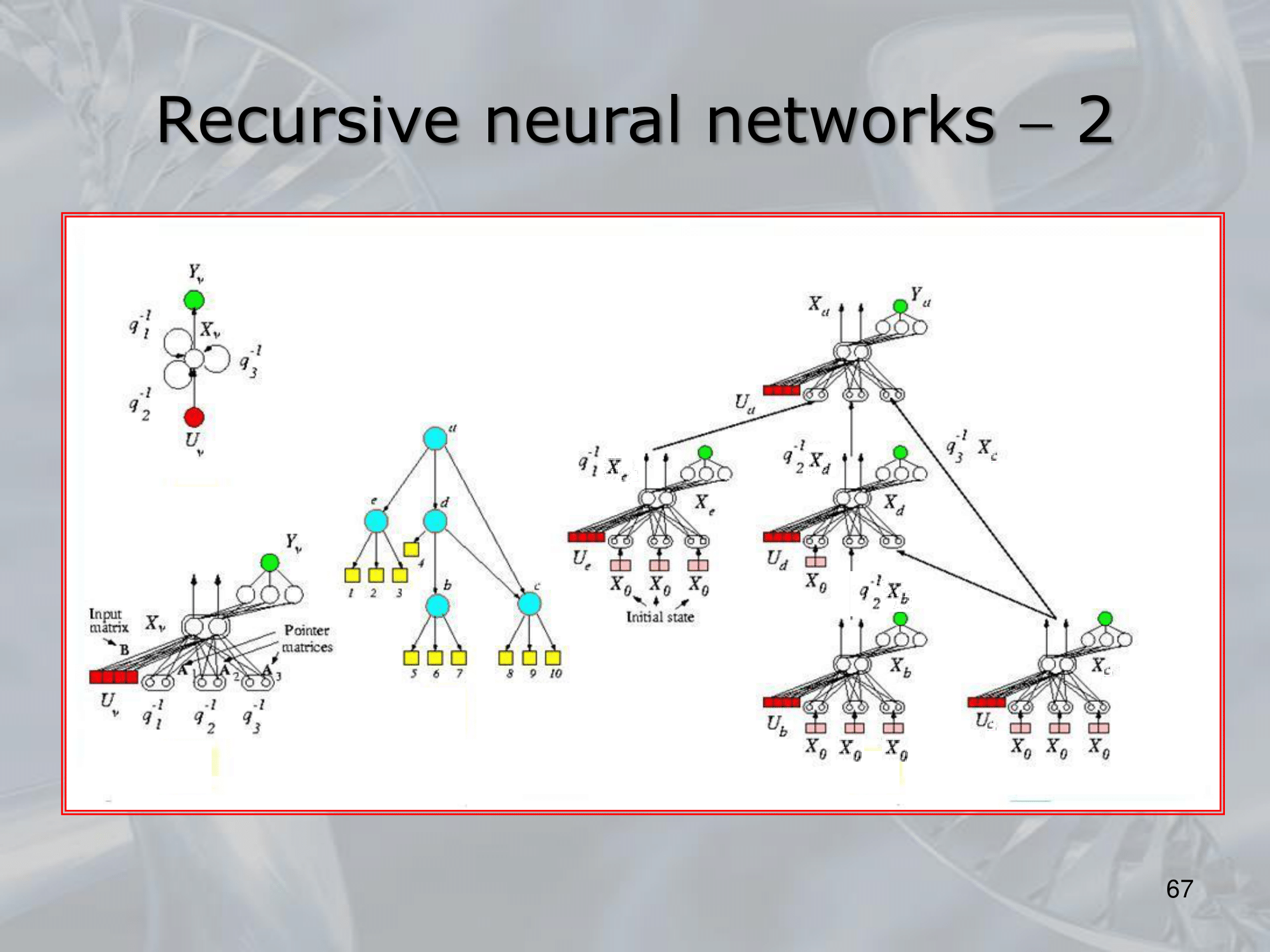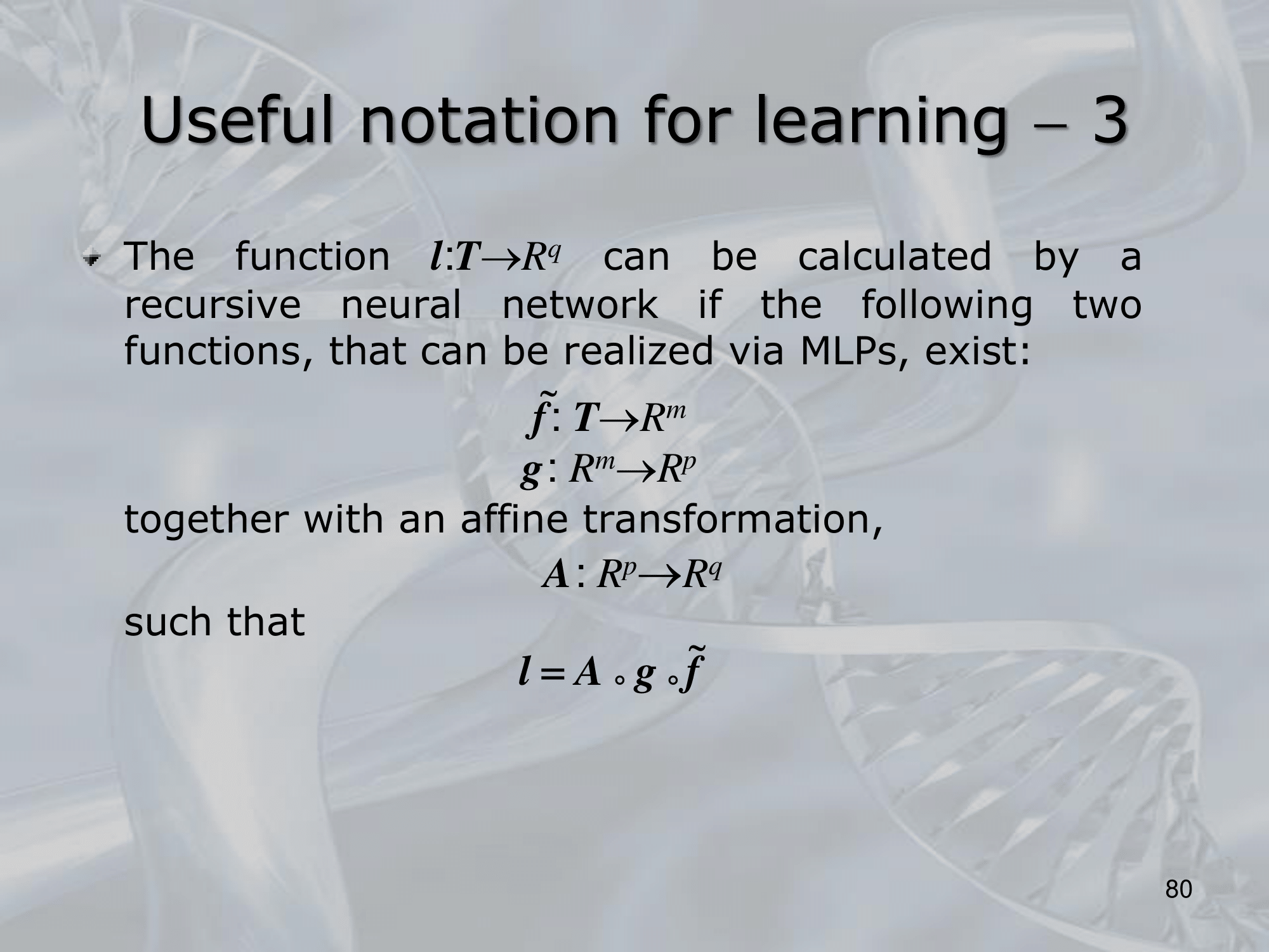 The key idea behind RNNs is to define a neural network architecture that can be applied recursively to the substructures of the input, allowing the network to build up a representation of the entire input by combining information from its substructures. This is typically done by defining a set of local transition functions that operate on each substructure, and using these functions to propagate information up the tree or graph structure.