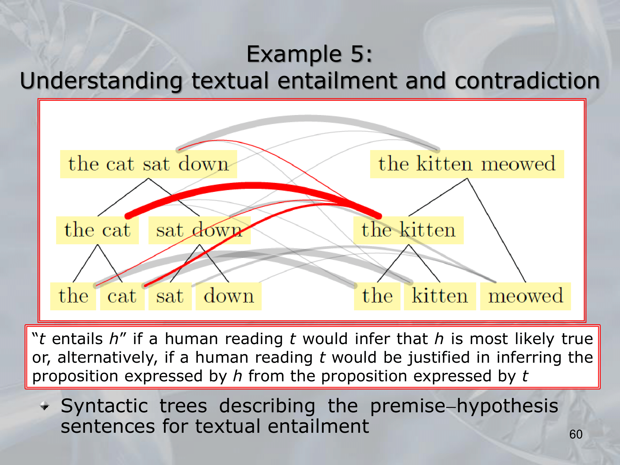 The principal characteristic of an RNTN is the recursion, letâs see an example: