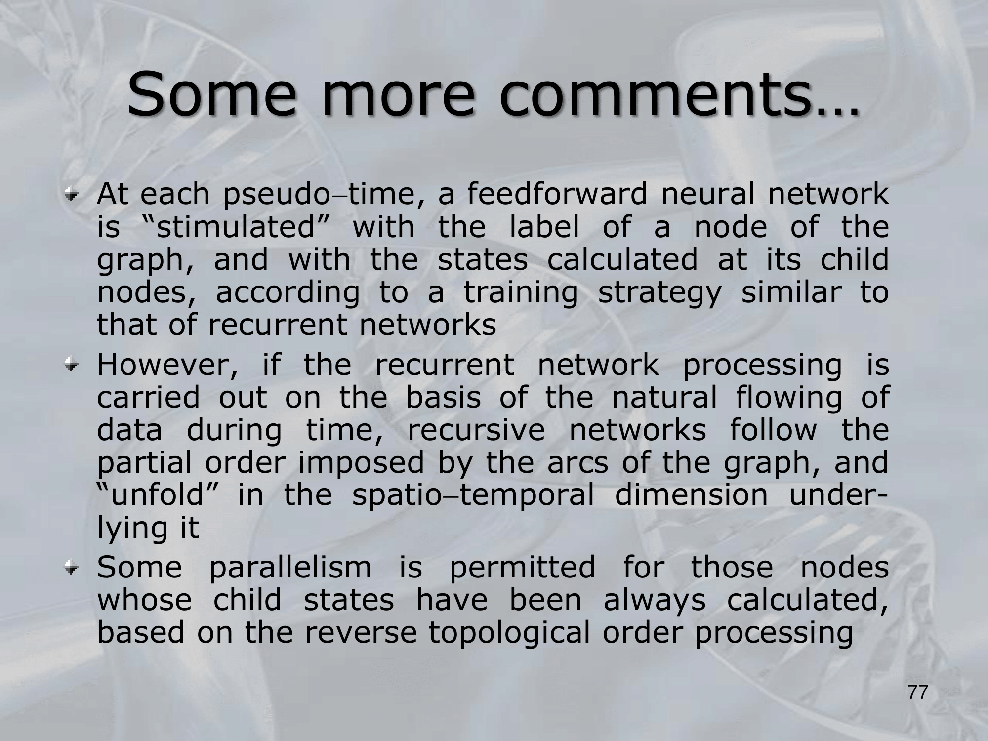 Letâs see how the recursion works, note that we do not actually pass words to the network but a vector of numbers that represents them.