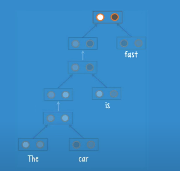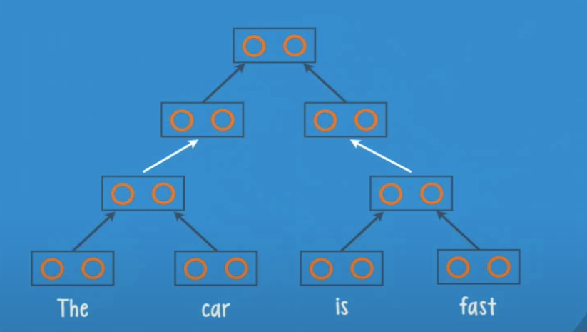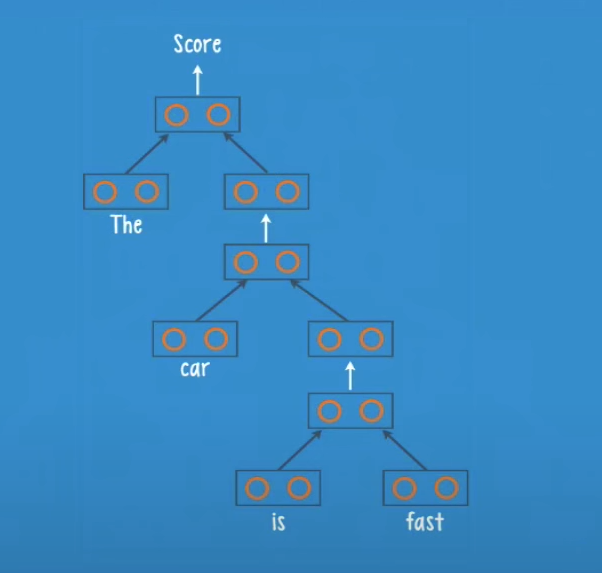 We will now feed an english sentence âThe car is fastâ to an RNTN with the structure seen before.