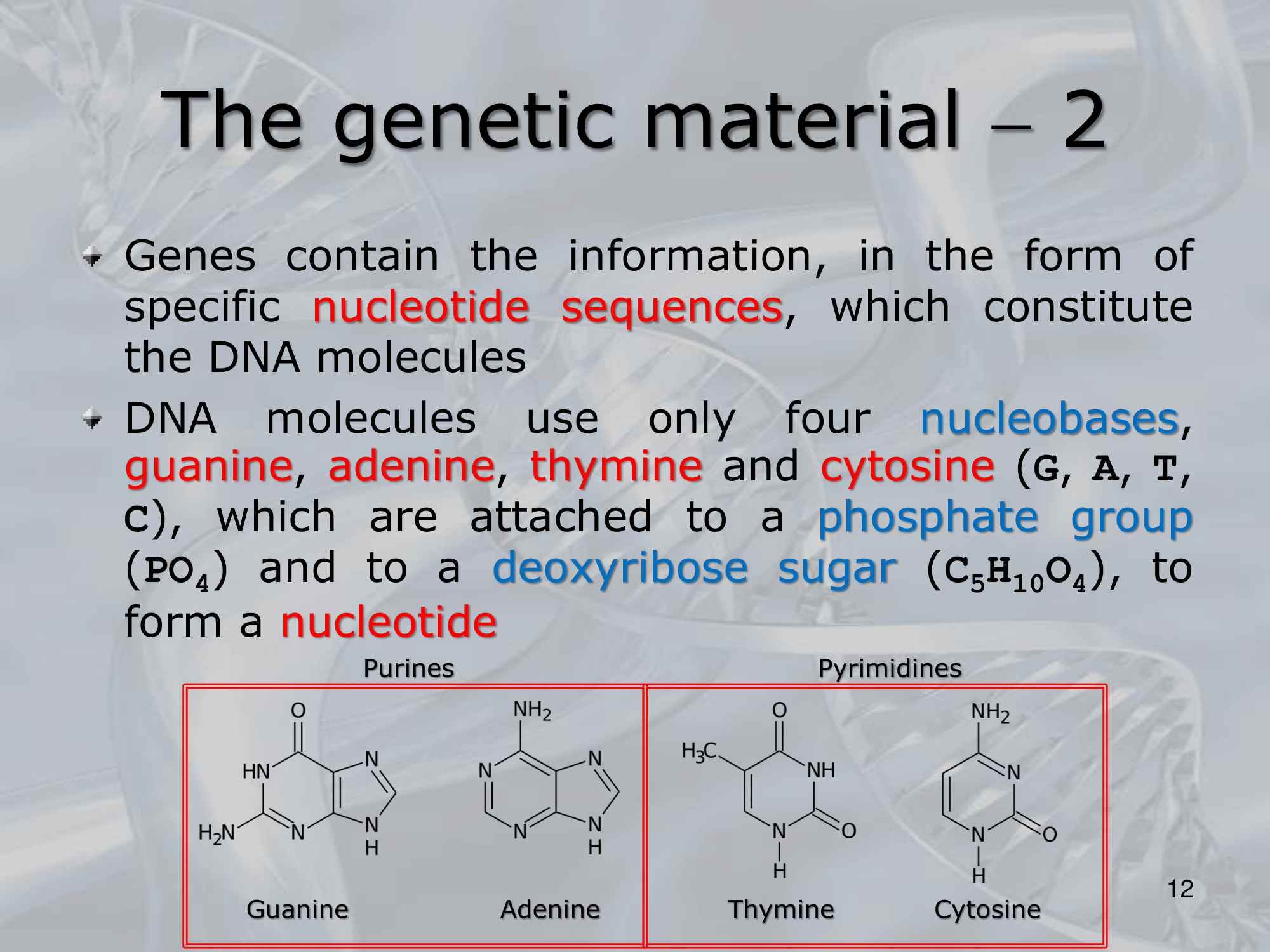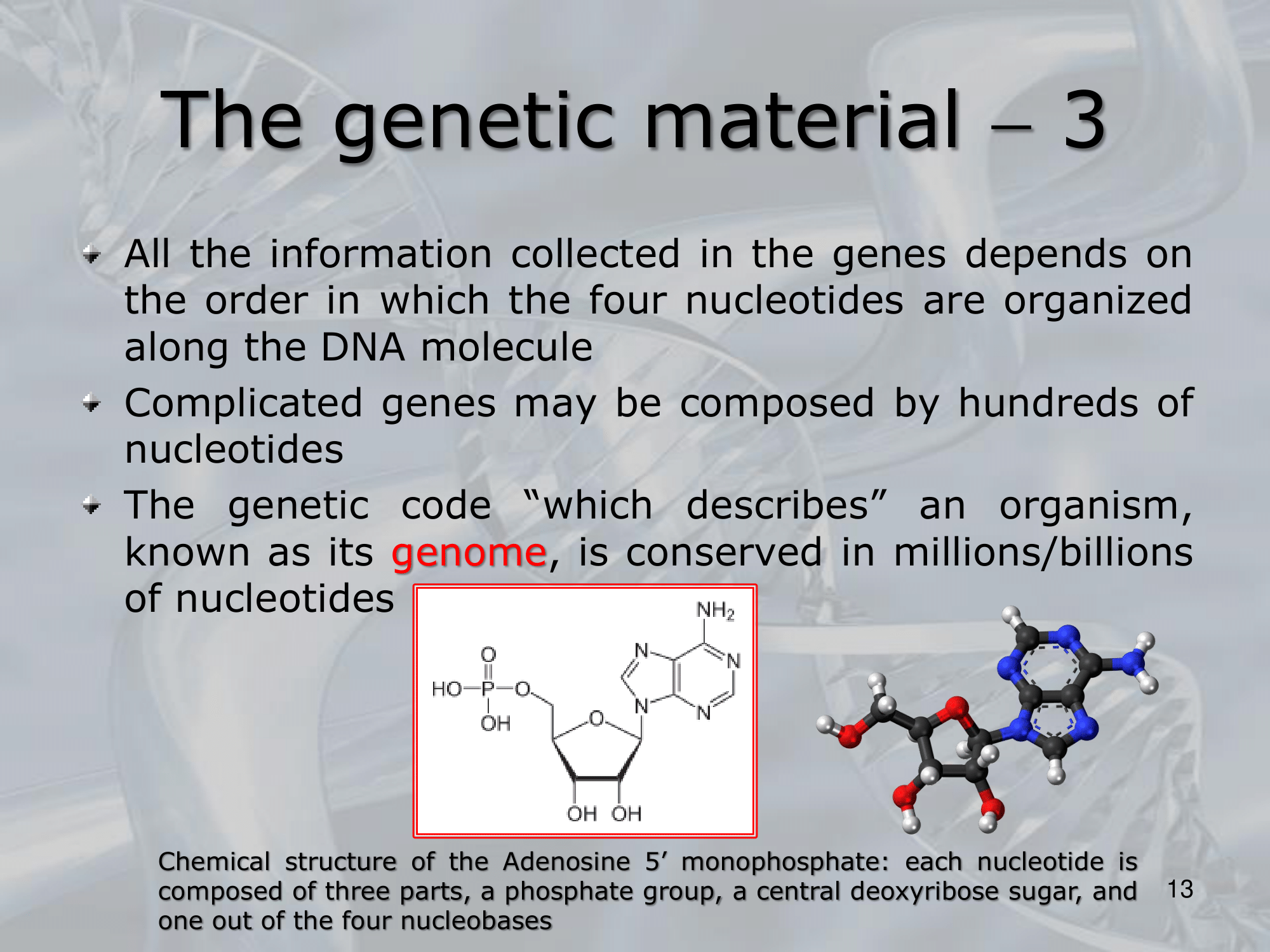Un nucleotida è l’unione di una base ad un gruppo fosfato (), e ad uno zucchero desossiribosio ()