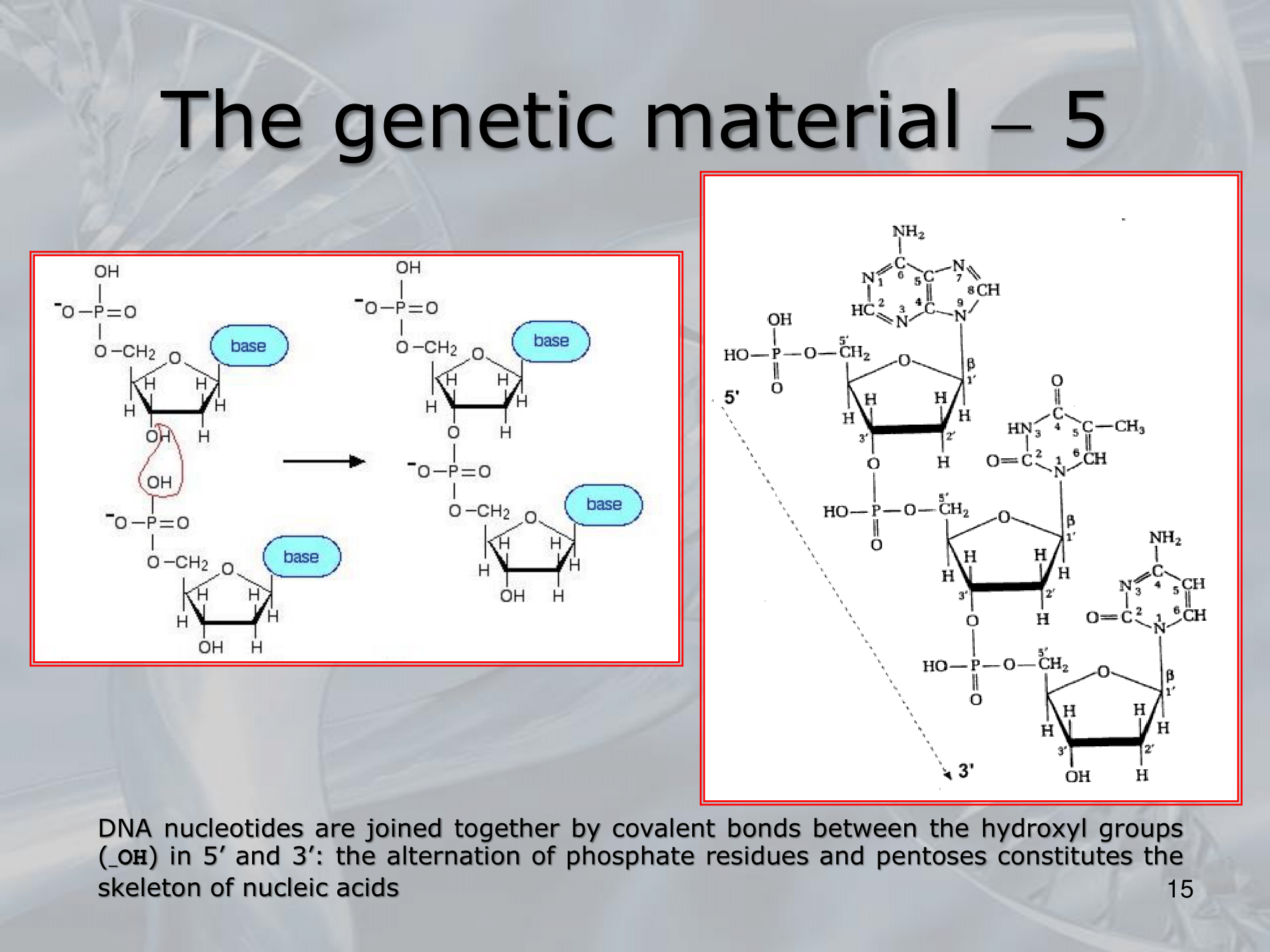 Il corrisponde ad un Carbonio “libero” dello zucchero desossiribosio (). Mentre il corrisponde ad Carbonio libero del nucleotida. Sono chiamati e perché quelle sono le posizione dei carboni nello zucchero, detto pentoso.