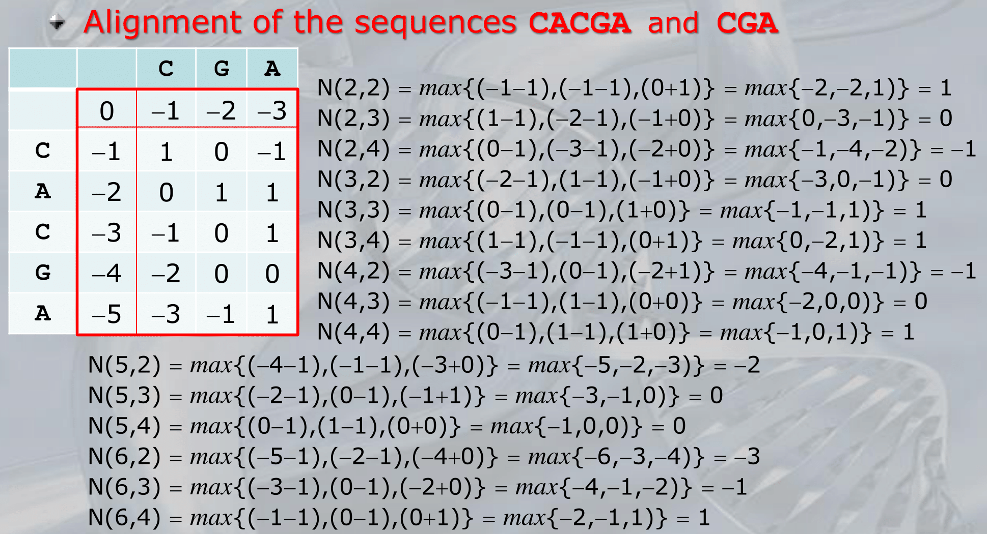 IMPORTANTE The Needleman-Wunsch Algorithm NOTE: This is a dynamic algorithm that return the optimal alignment of two sequences.