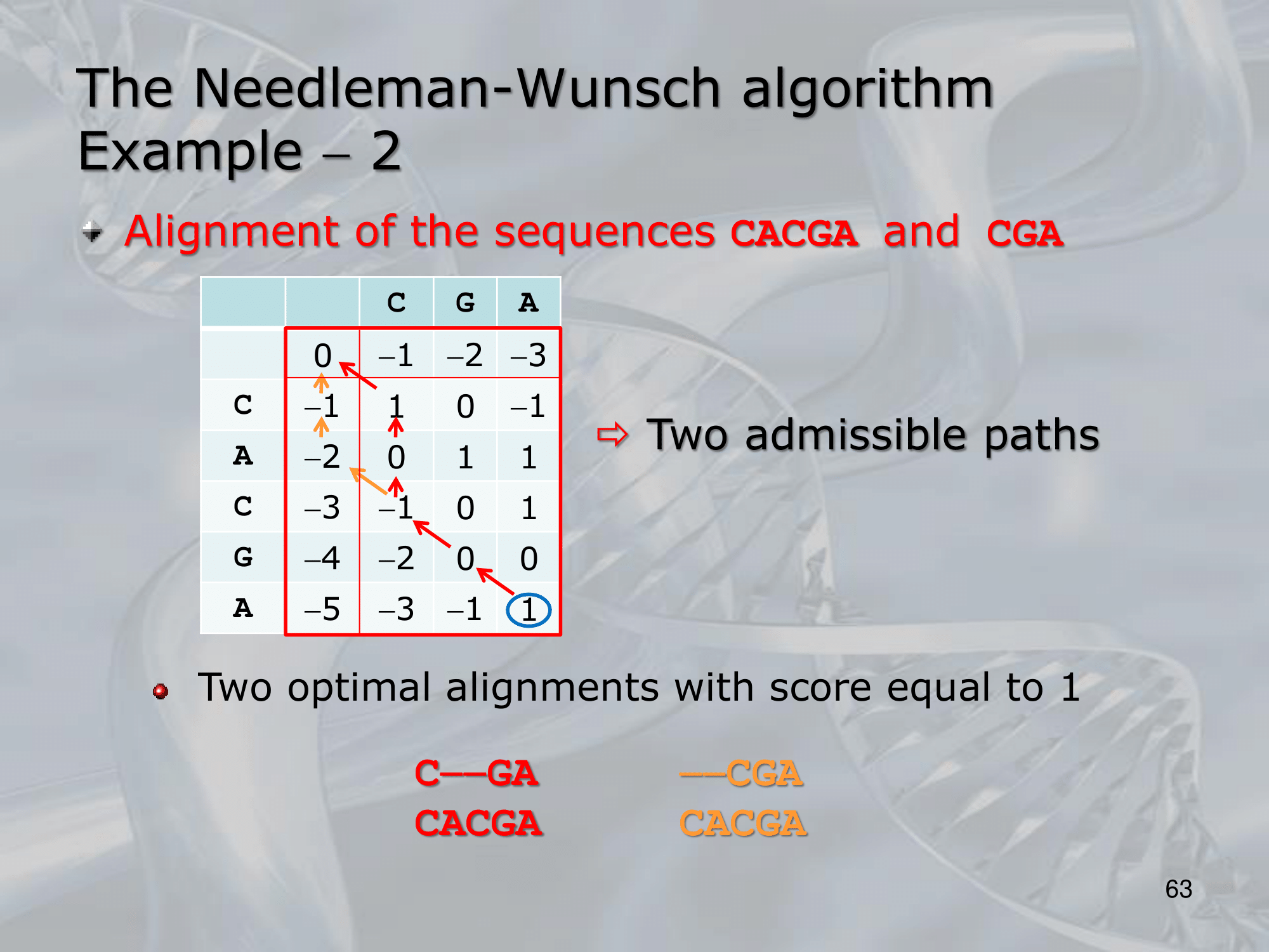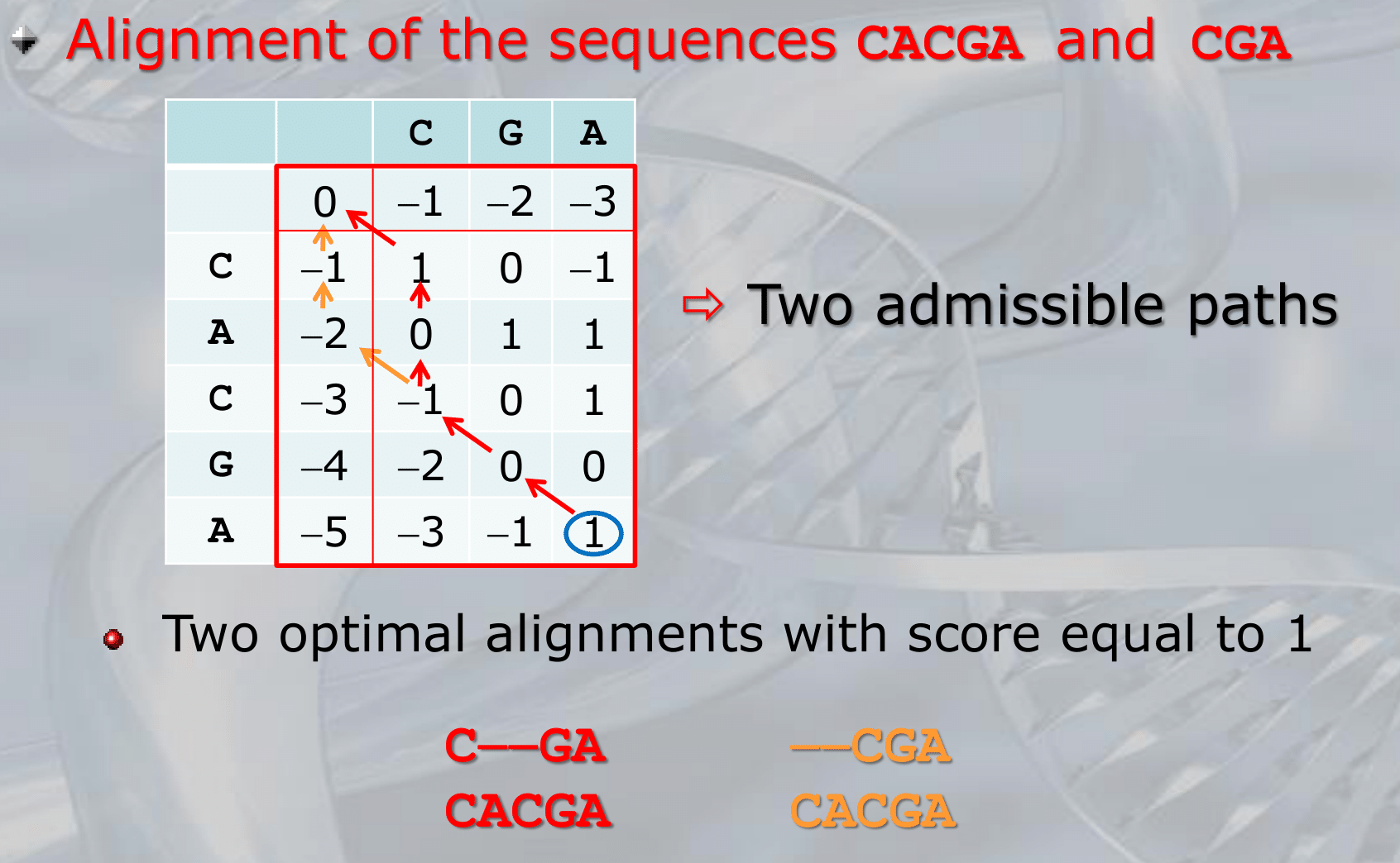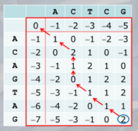 Once constructed the matrix, we take the last element, and reconstruct the allignment. Watch the example, they are more clear.
