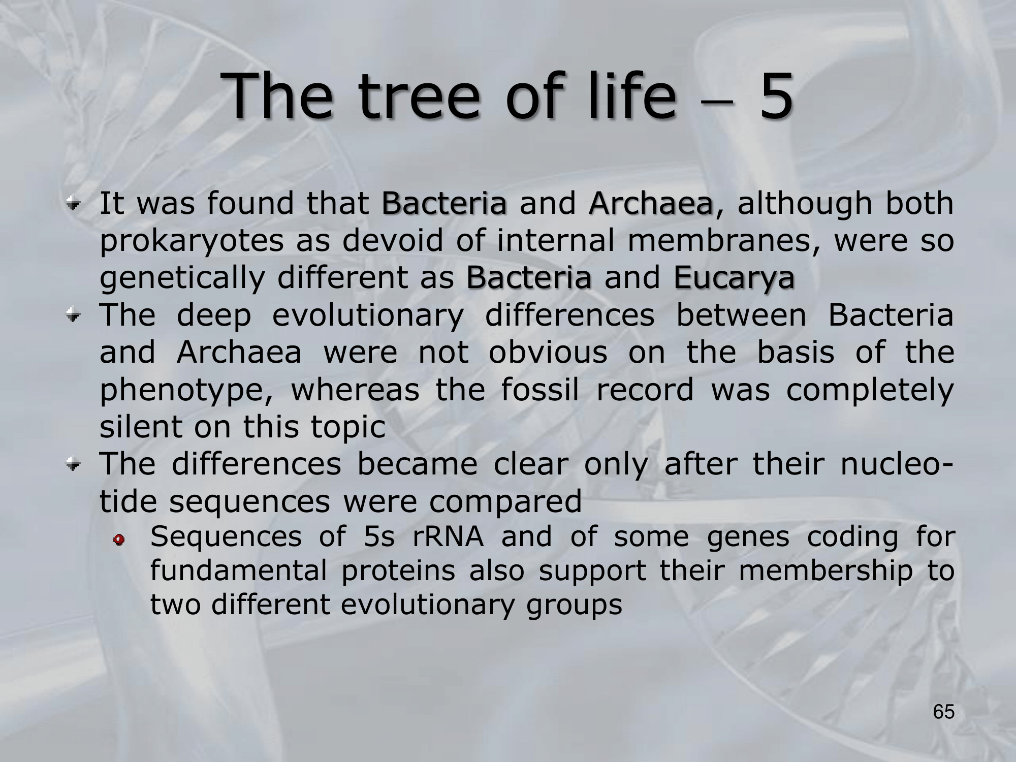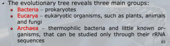 NOTE: Eucarya: Do have internal membranes Bacteria and Archaea: Do NOT have internal membranes (the difference between the wo is seen studying their rRNA)