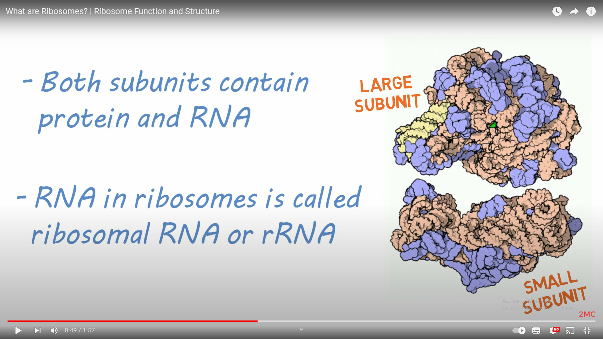 Ribosomes function by translating the genetic information stored in messenger RNA (mRNA) into the amino acid sequence of a protein. - The structure of a ribosome is divided into two subunits: a small subunit and a large subunit.