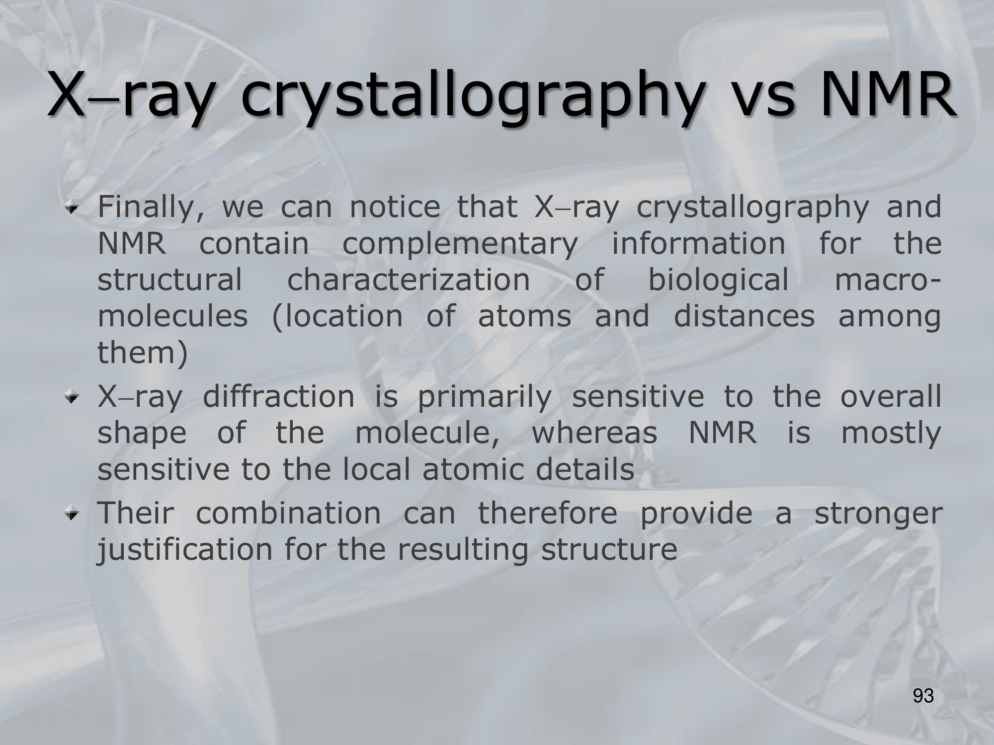 IMPORTANTE X-ray Crystallography vs NMR Both methods contain complementary information:
