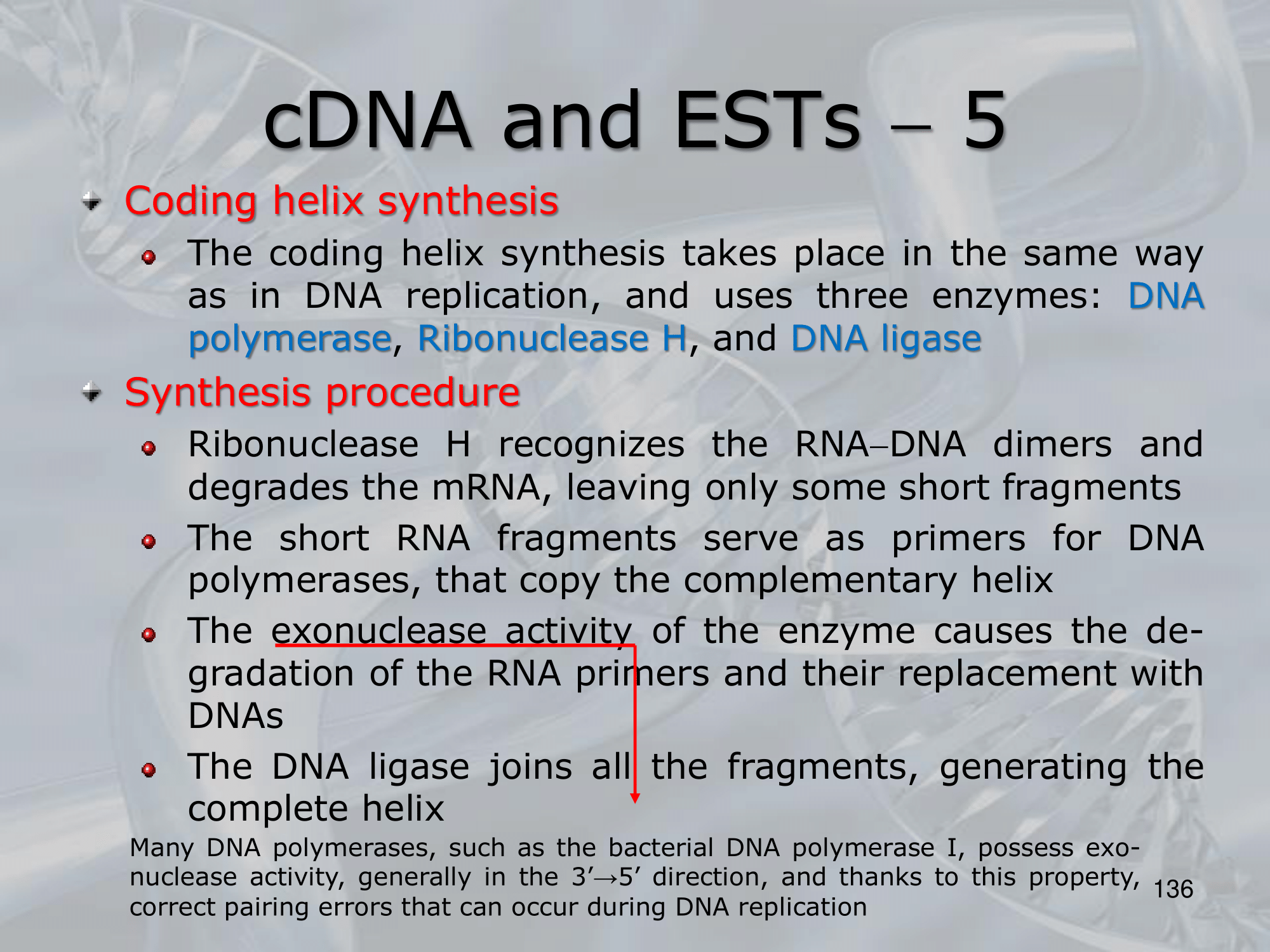 The cDNA strands are then duplicated to be studied and saved in a cDNA libabray, they are useful because we know for a fact that they are the mature transcribed code that produces a protein. Moreover, partial sequences of cDNA are used as ESTs (Expressed Sequence Tags), useful in the assembly of contigs, for gene mapping and recognition