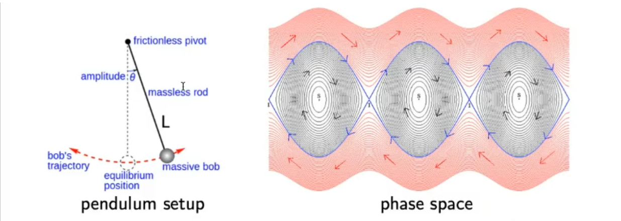 Given the following “pendulum” sytems, without friction:We can draw its phase space: