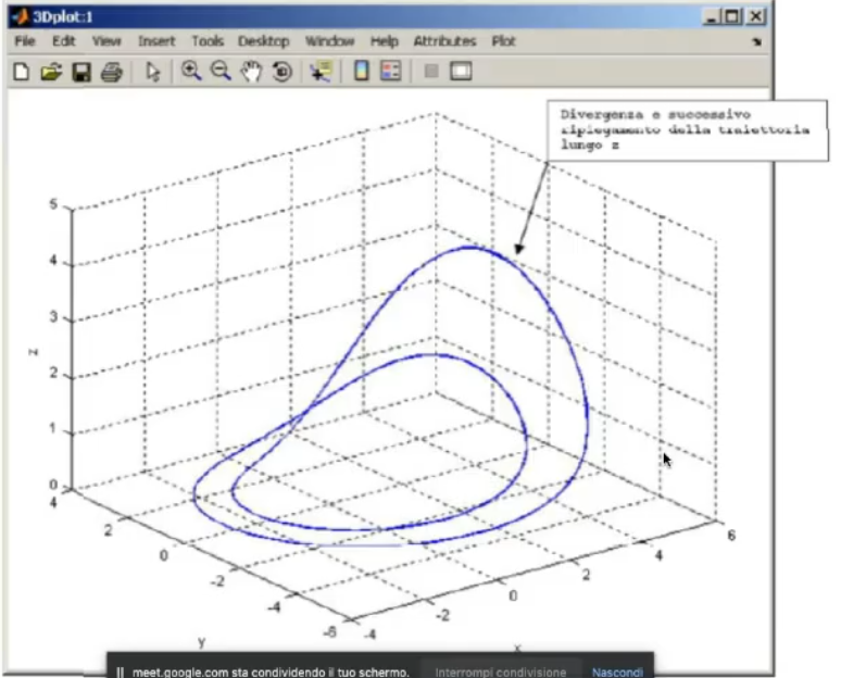 In 3 dimensional space, this reduced system induces the “strethcing mechanism”, typical of chaotic system. But to introduce proper chaos we need also a “folding mechanism”, this mechanism is introduced by the third equation.