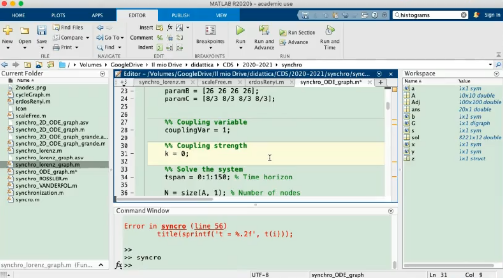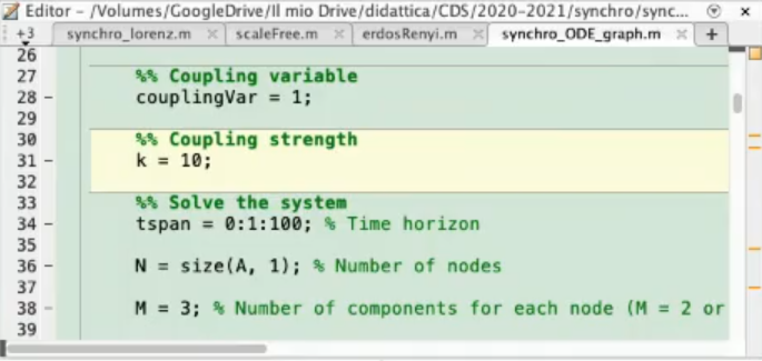 - NOTE: In this case the shape of the network does not change much about stability or syncronization, but (in general) it absolutely can.