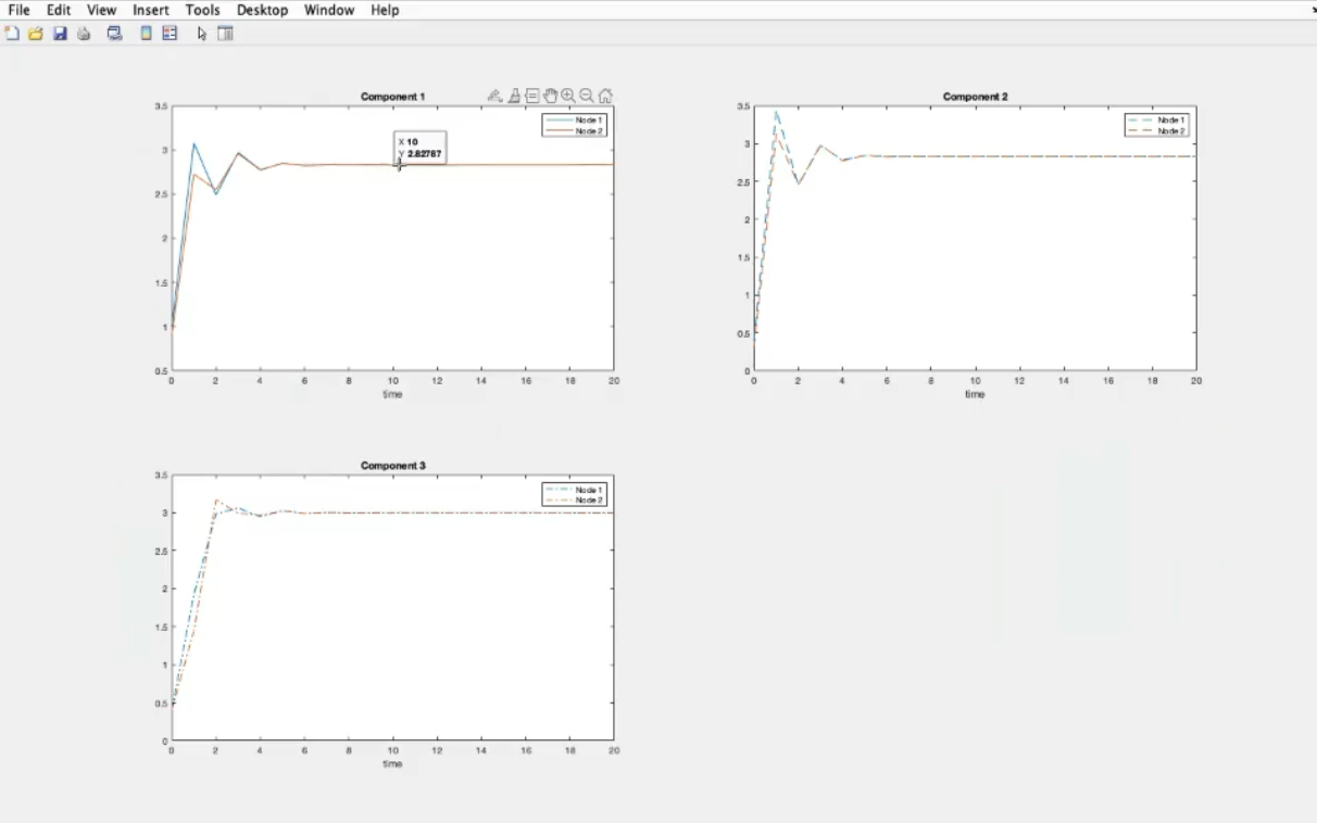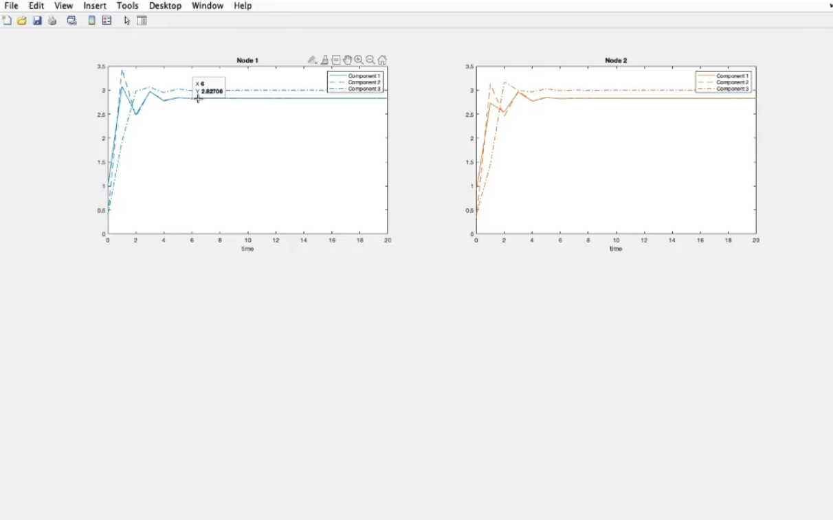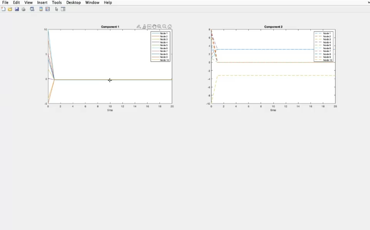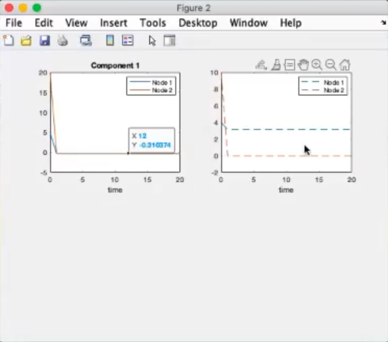 - After solving the system, this are the results, since the system is stable, both system convergee to the same results.
